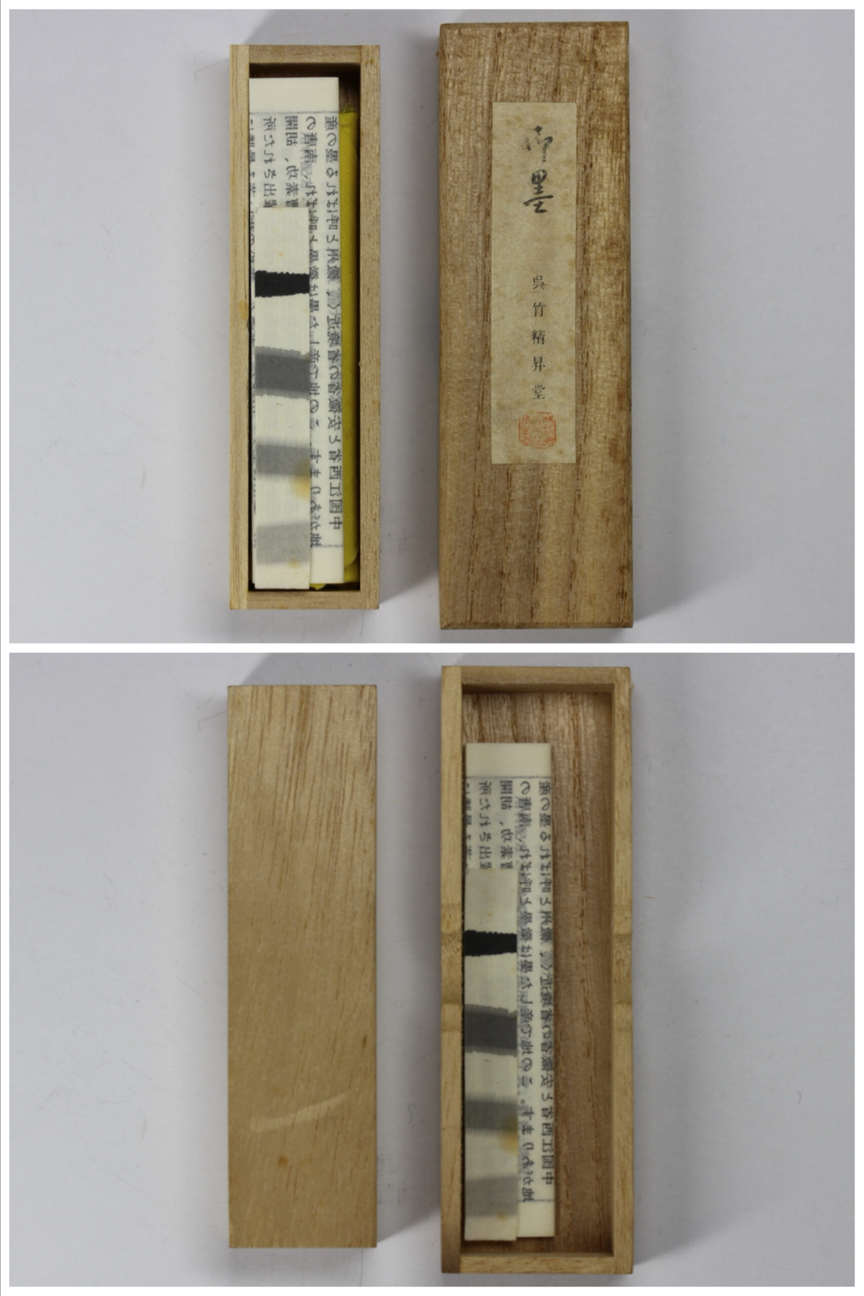 [玄清堂]書家旧蔵MY 和墨 栄寿堂、呉竹精昇堂 墨4丁 (未使用1丁・使用墨3丁) 150g 桐箱【文房四宝】