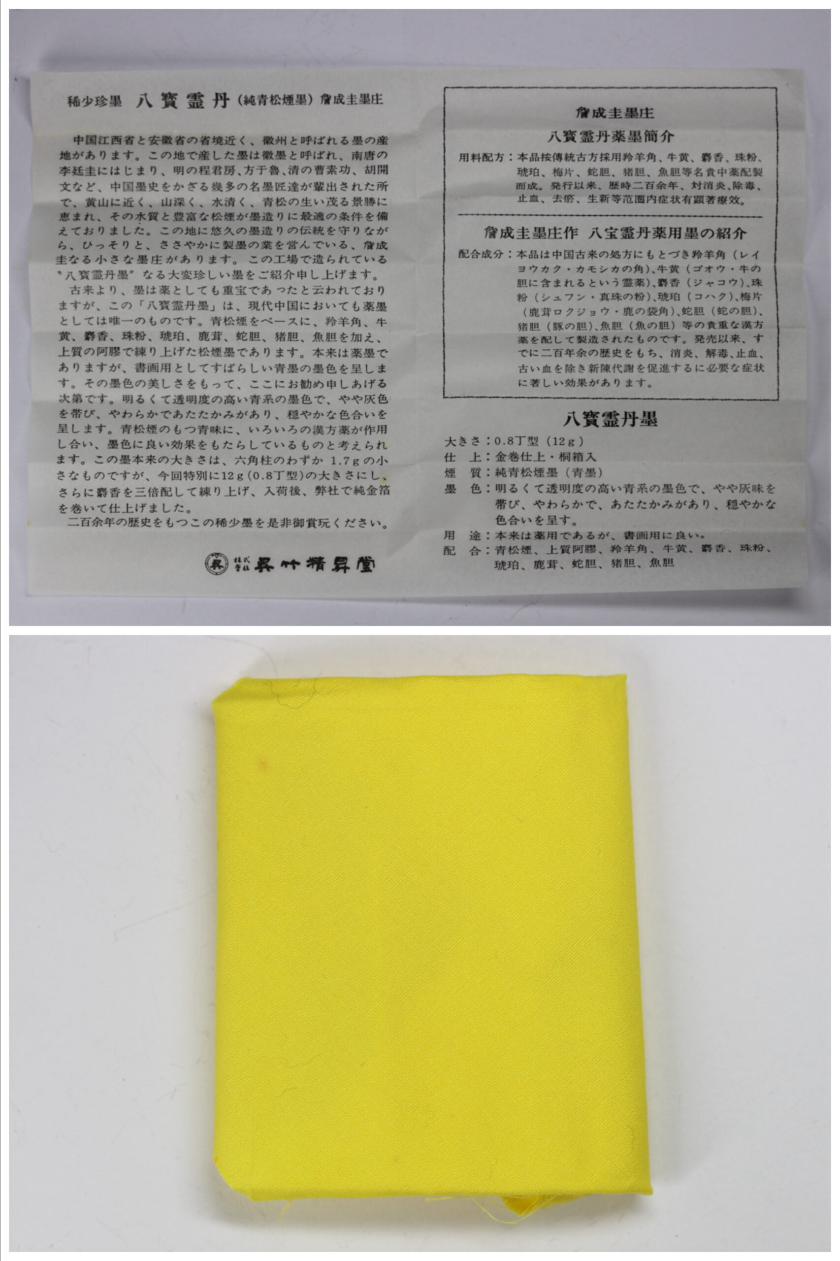 呉竹精昇堂「八寶霊丹」、純金箔巻、純青松煙墨、青墨、詹成圭監製。