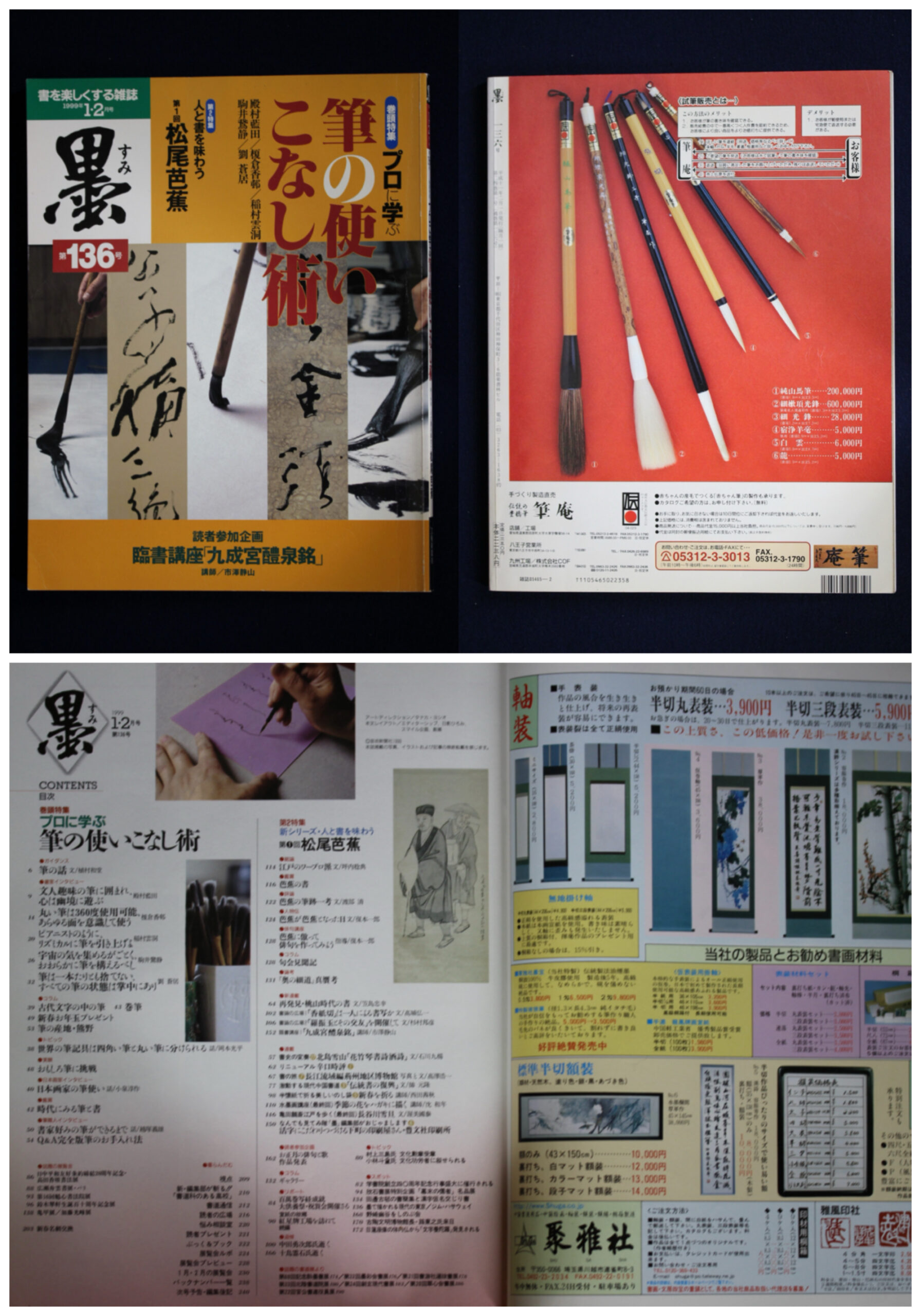 | 136号 | (1999年1・2月号) | 「巻頭特集 プロに学ぶ筆の使いこなし術 第2特集 人と書を味わう松尾芭蕉」 |