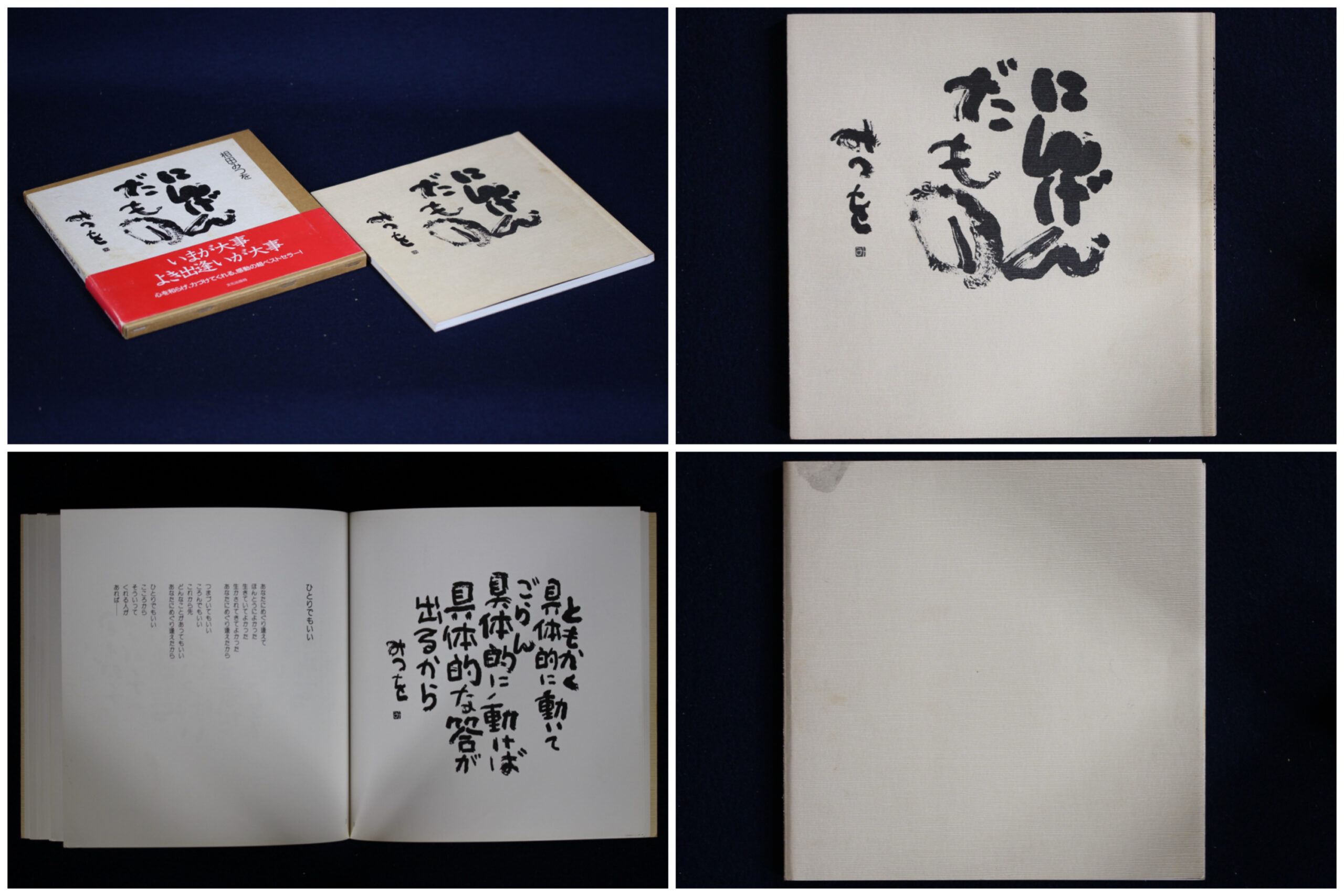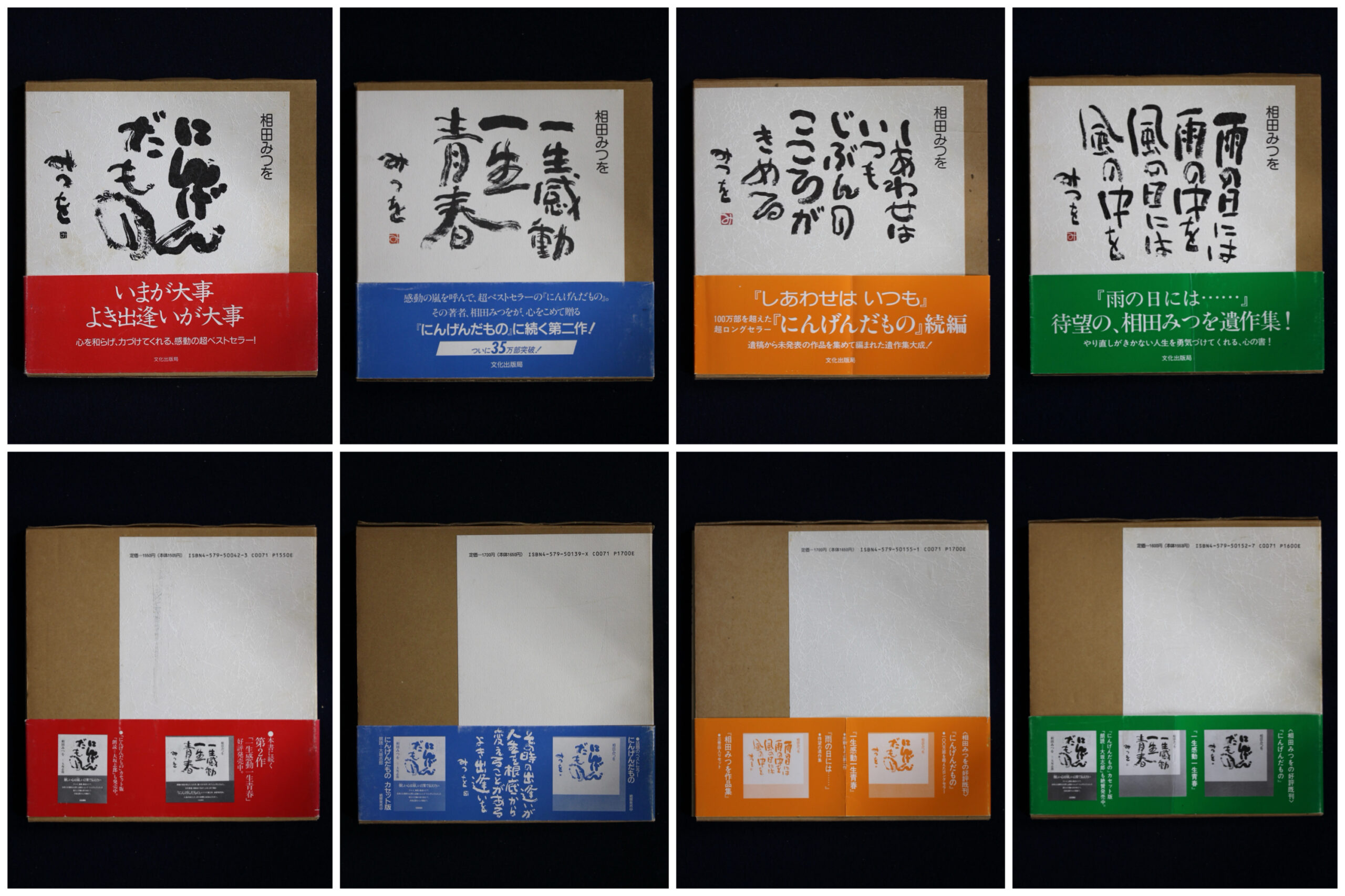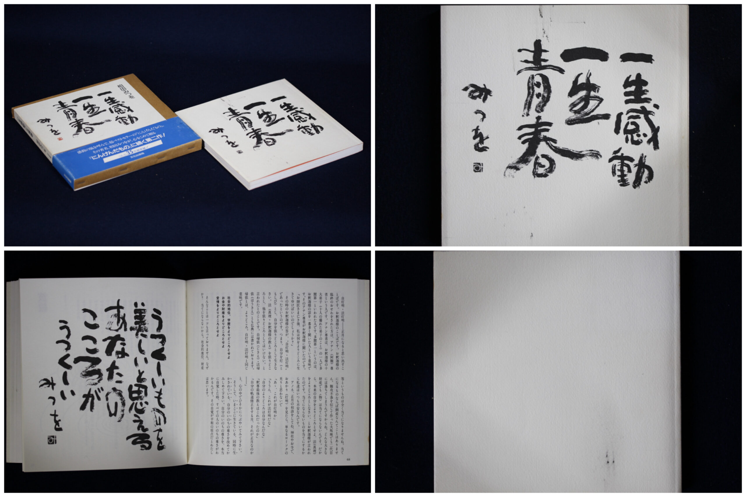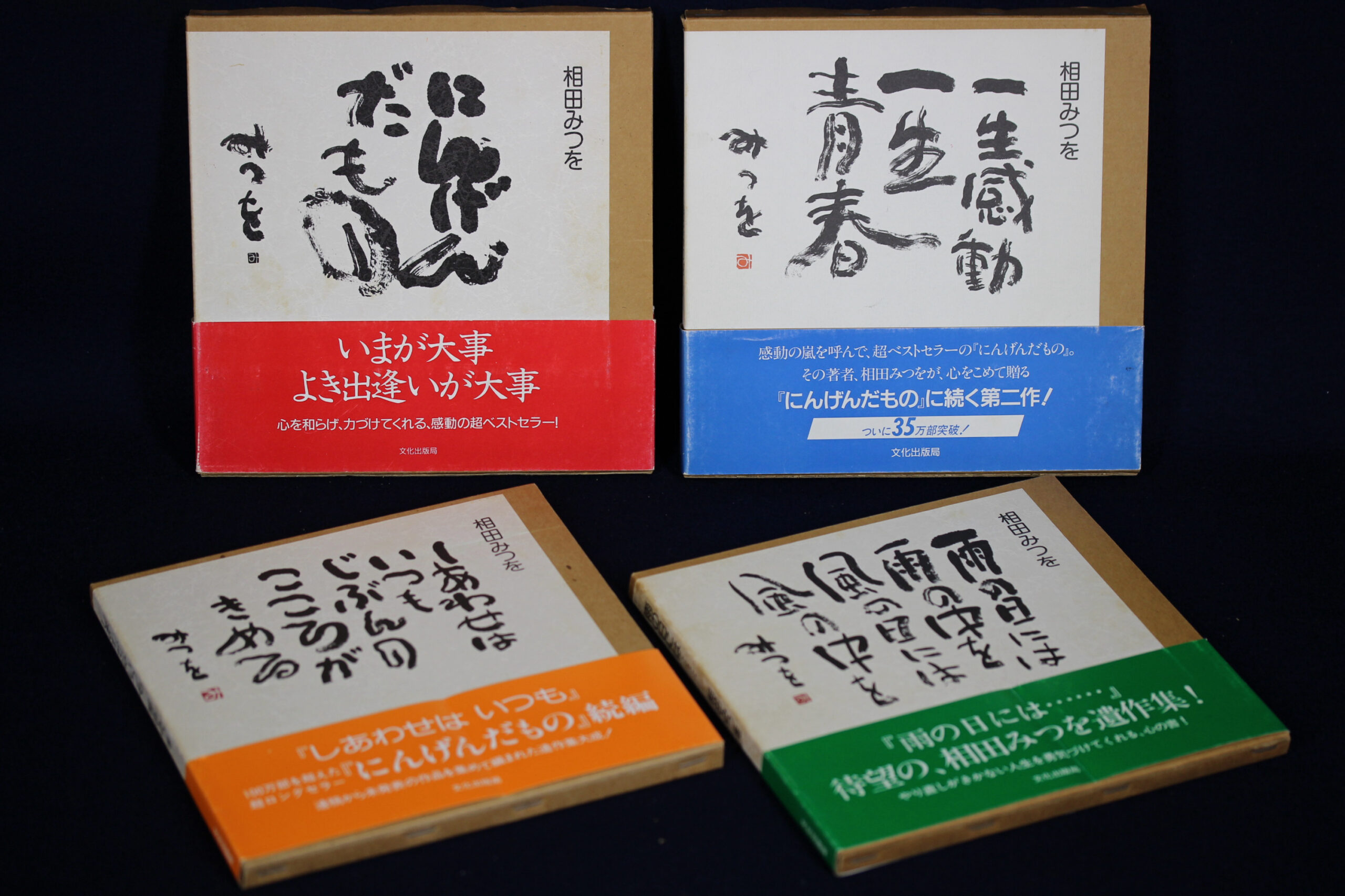[玄清堂]書家旧蔵 相田みつを書籍4冊「にんげんだもの」,「雨の日には…」,「一生感動一生青春」,「しあわせはいつも」1993~1995年発行