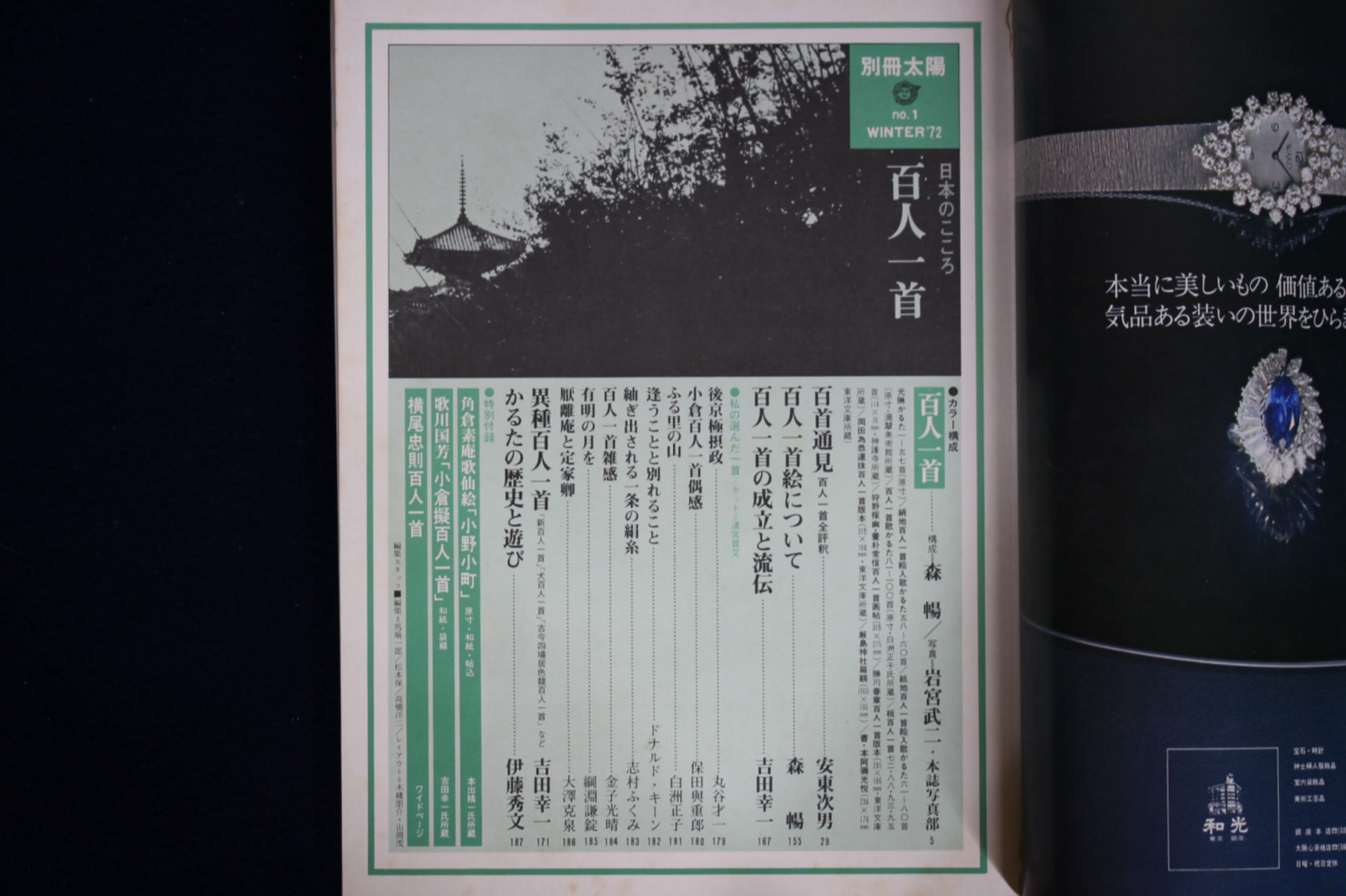 [玄清堂] 書家旧蔵「別冊太陽No1(1972冬)日本のこころ 百人一首」 特別付録付 平凡社 1972(昭和47)年発行