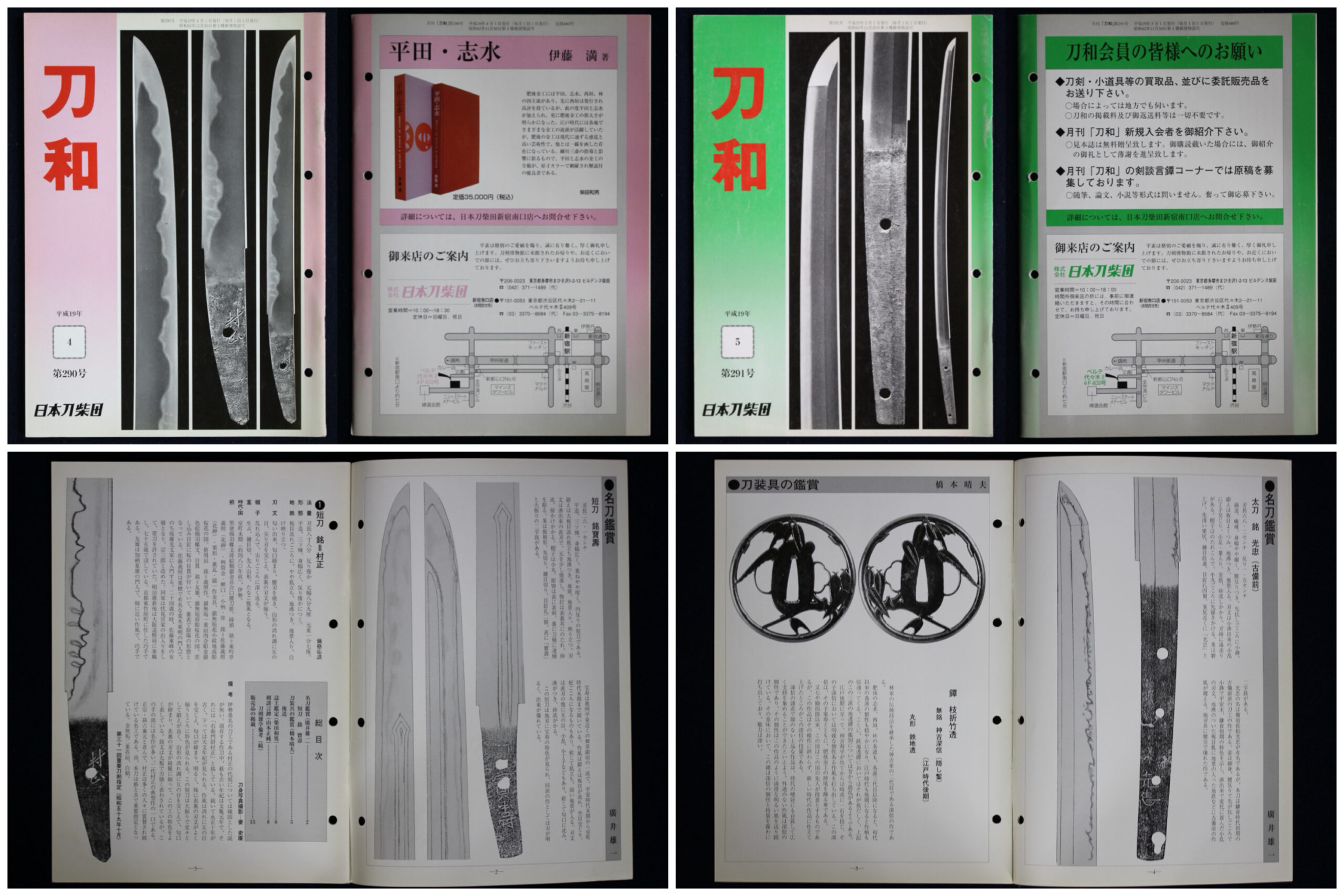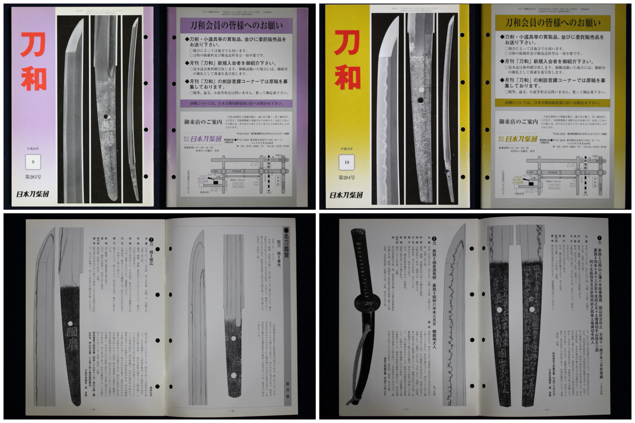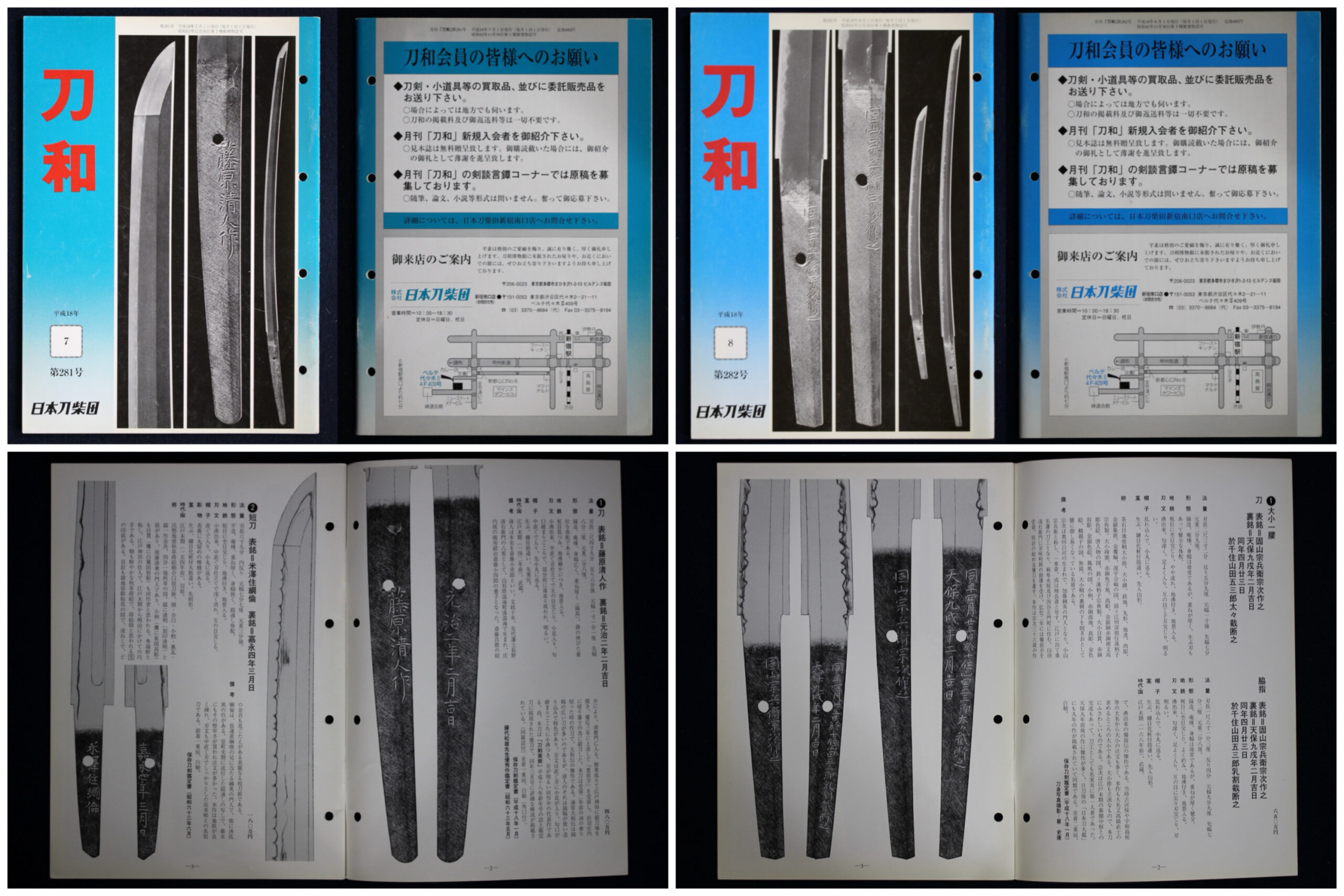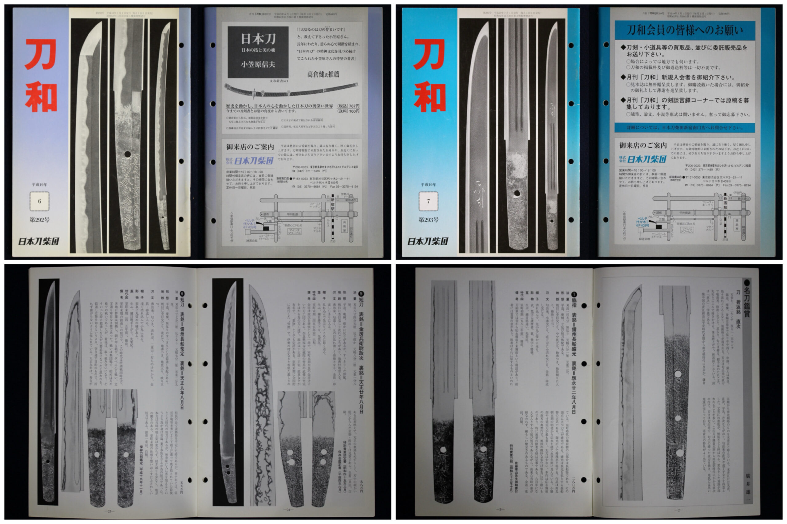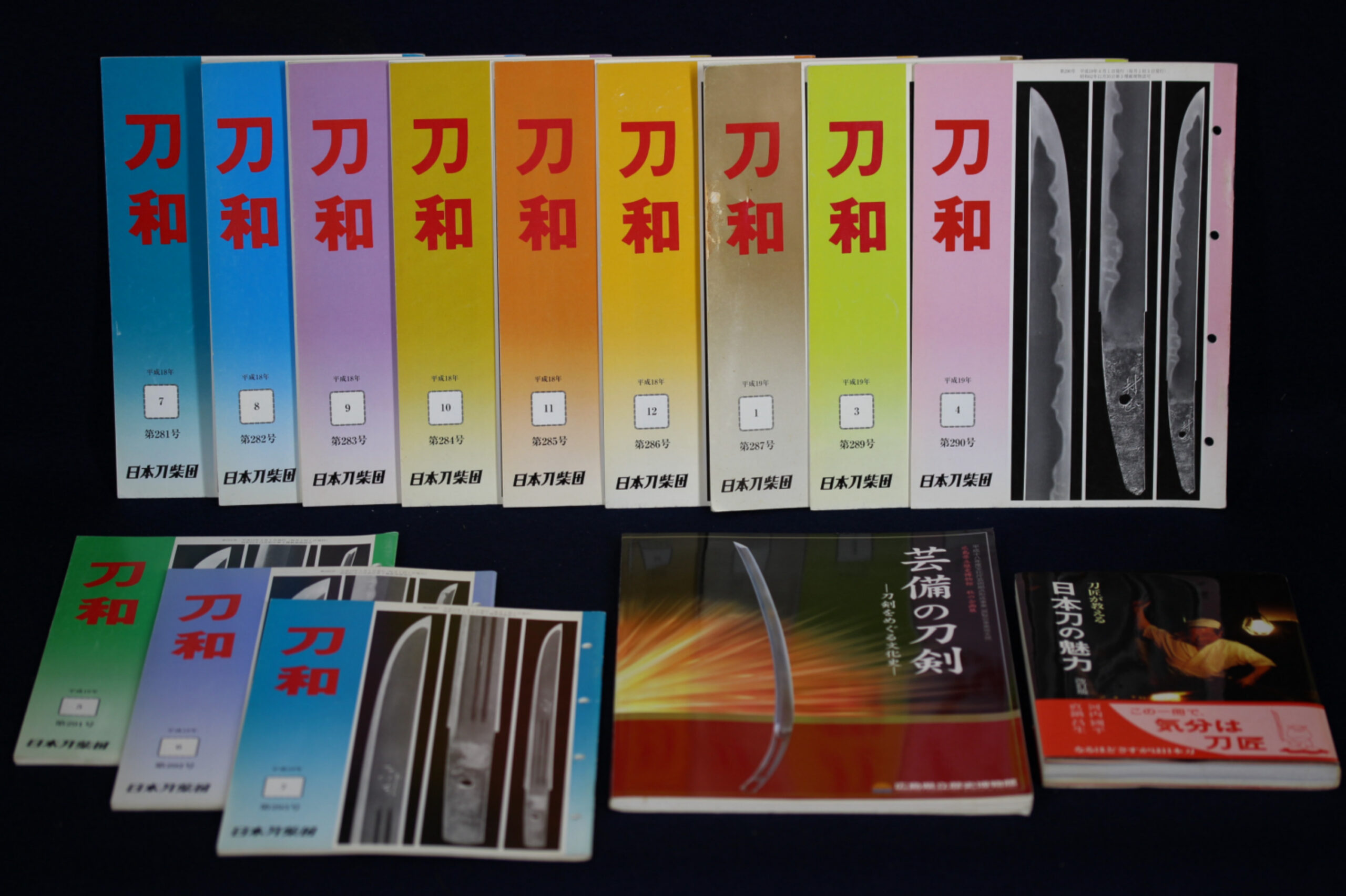 本 縦(cm)21.1 、横(cm)14.9 、厚さ(cm)1.4 芸備の刀-刀剣をめぐる文化史- 広島県立歴史博物館 2006(平成18)年発行 本 縦(cm)29.7 、横(cm)21.0 、厚さ(cm)0.6 刀和(2006.7〜12、2007.1・3〜7)日本刀柴田 2006(平成18)年~2007(平成19)年発行 本(1冊あたり) 縦(cm)25.7 、横(cm)18.2 、厚さ(cm)0.2 |