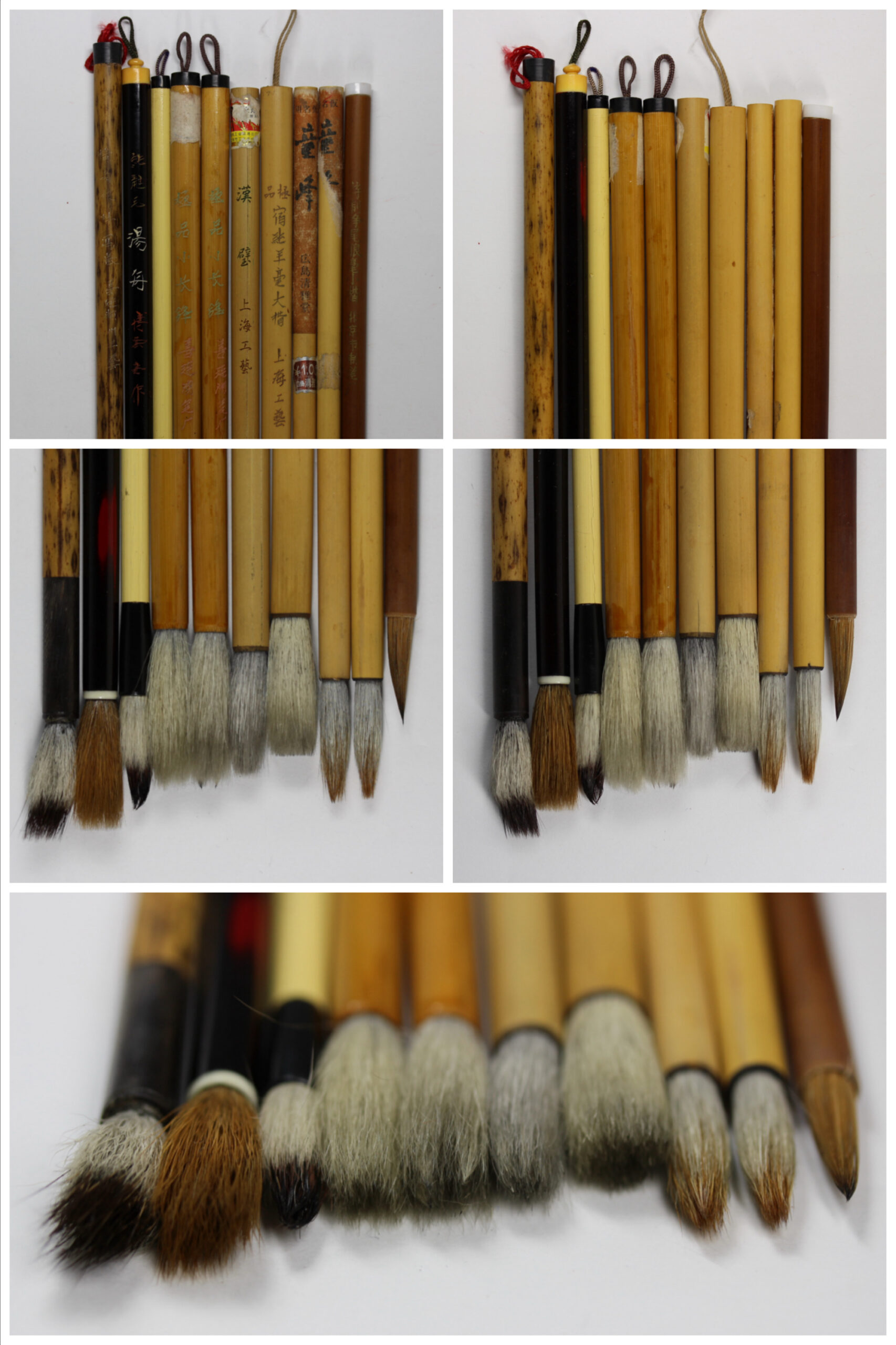 [玄清堂] 書家旧蔵 唐筆 和筆 上海工藝、善璉湖筆厂、博雲堂等 筆10本(唐筆6本、和筆3本、無銘1本)、筆巻6点まとめて【文房四宝】