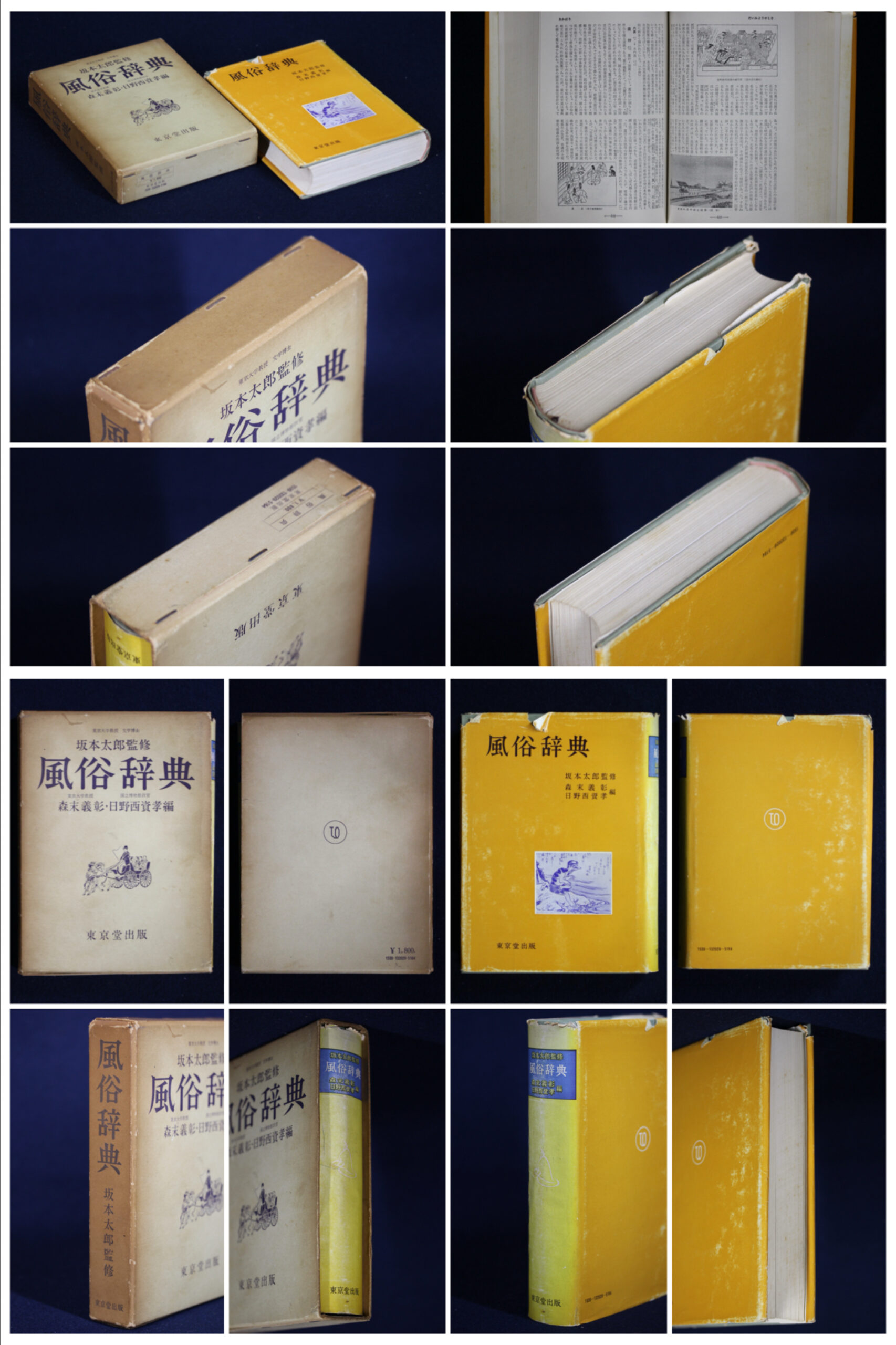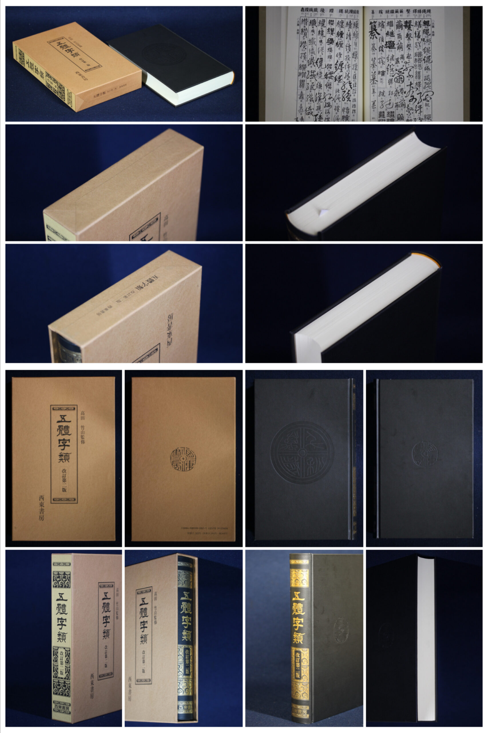 本体 縦(cm)26.8 、横(cm)19.7 、厚さ(cm)7.5 朝陽字鑑精萃 西東書房 1977(昭和52)年発行 髙田忠周著 本体 縦(cm)21.3 、横(cm)16.0 、厚さ(cm)4.3 外箱 縦(cm)22.0 、横(cm)16.3 、厚さ(cm)4.9 大型版 五體字類(改定第二版) 高田竹山監修 西東書房 1996(平成8)年発行 本体 縦(cm)26.3 、横(cm)16.9 、厚さ(cm)4.0 外箱 縦(cm)27.3 、横(cm)17.4 、厚さ(cm)4.7 古語辞典(新訂版) 旺文社 宇随憲治、今泉忠義、松村明編 1979(昭和54)年発行 本 縦(cm)18.0 、横(cm)12.1 、厚さ(cm)4.0 禅語古語字典 日本書道協会 品川惠保 本体 縦(cm)26.0 、横(cm)18.9 、厚さ(cm)4.3 本体(別冊) 縦(cm)26.0 、横(cm)18.9 、厚さ(cm)0.7 外箱 縦(cm)27.2 、横(cm)20.3 、厚さ(cm)5.2 風俗辞典 坂本太郎監修 森末義彰・日野西資孝編 東京堂出版 1971(昭和46)年発行 本体 縦(cm)18.7 、横(cm)14.4 、厚さ(cm)3.7 外箱 縦(cm)19.8 、横(cm)14.6 、厚さ(cm)3.9 |