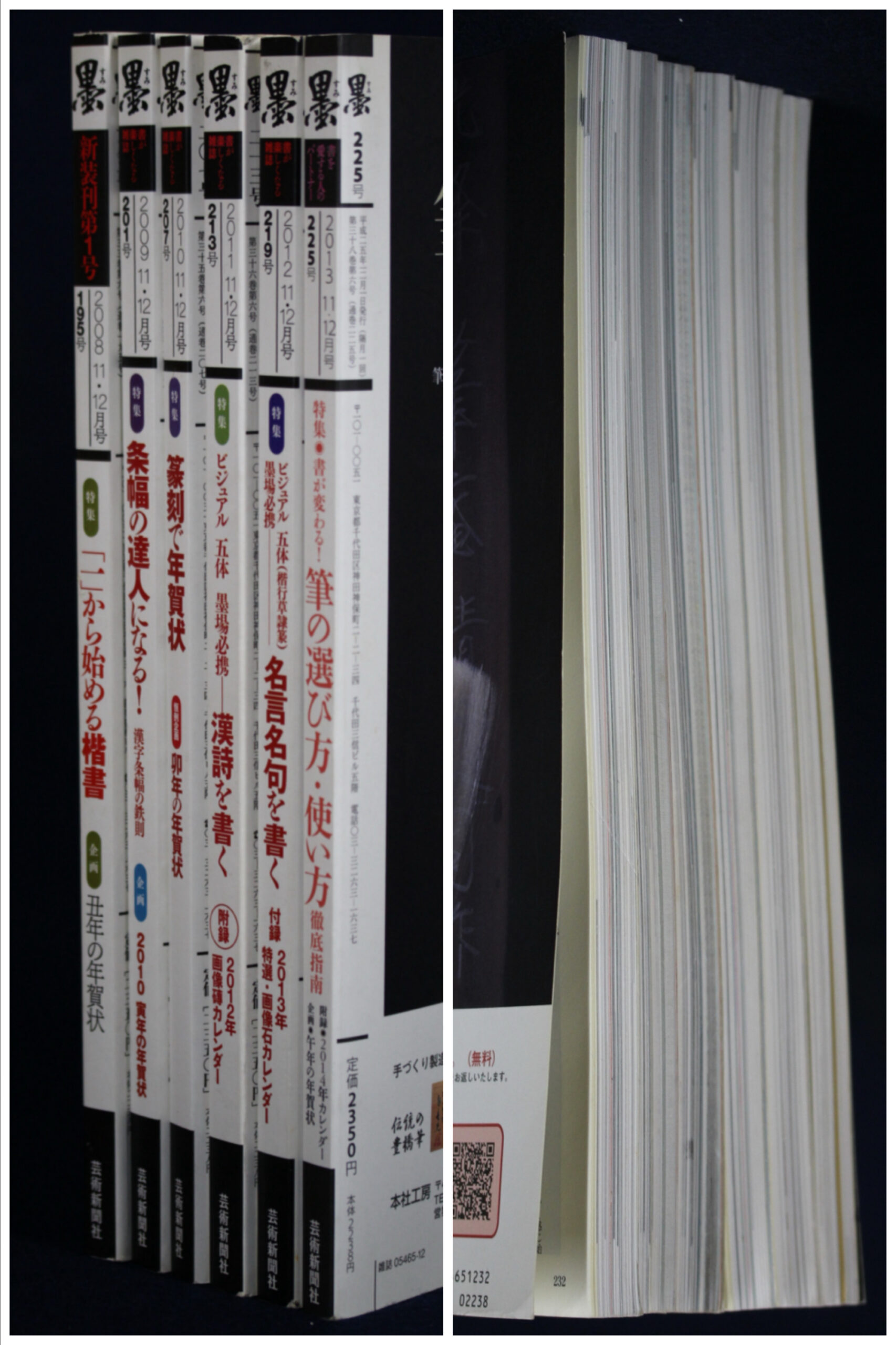 [玄清堂] 書家旧蔵 書道雑誌「墨」6冊(195,201,207,213,219,225) 芸術新聞社 2008(平成20)年~2013(平成25)年発行