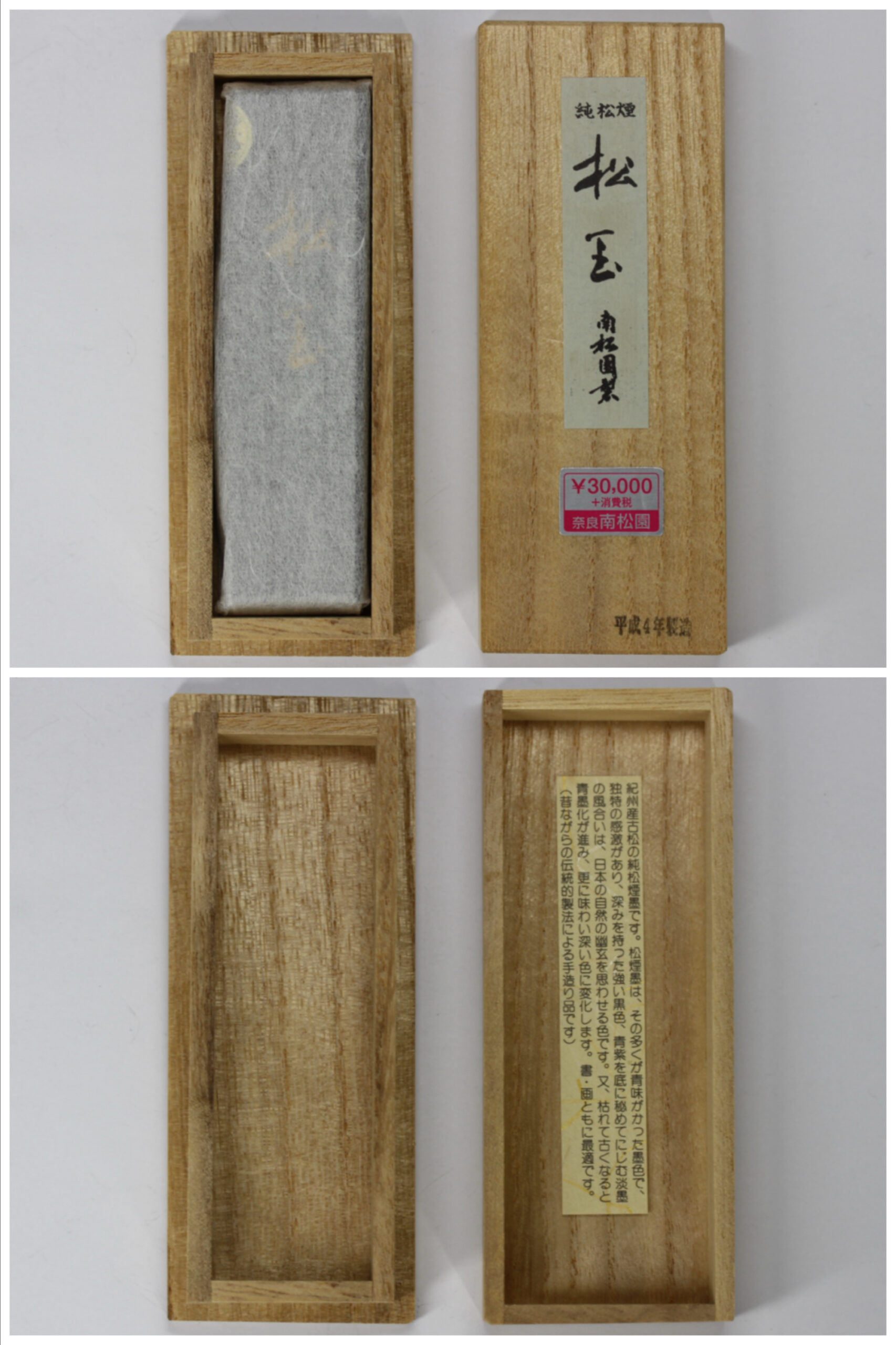 [玄清堂]和墨 南松園「松玉」 平成4年造 紀州産古松純松煙墨 2.0丁型 未使用 箱入【文房四宝】