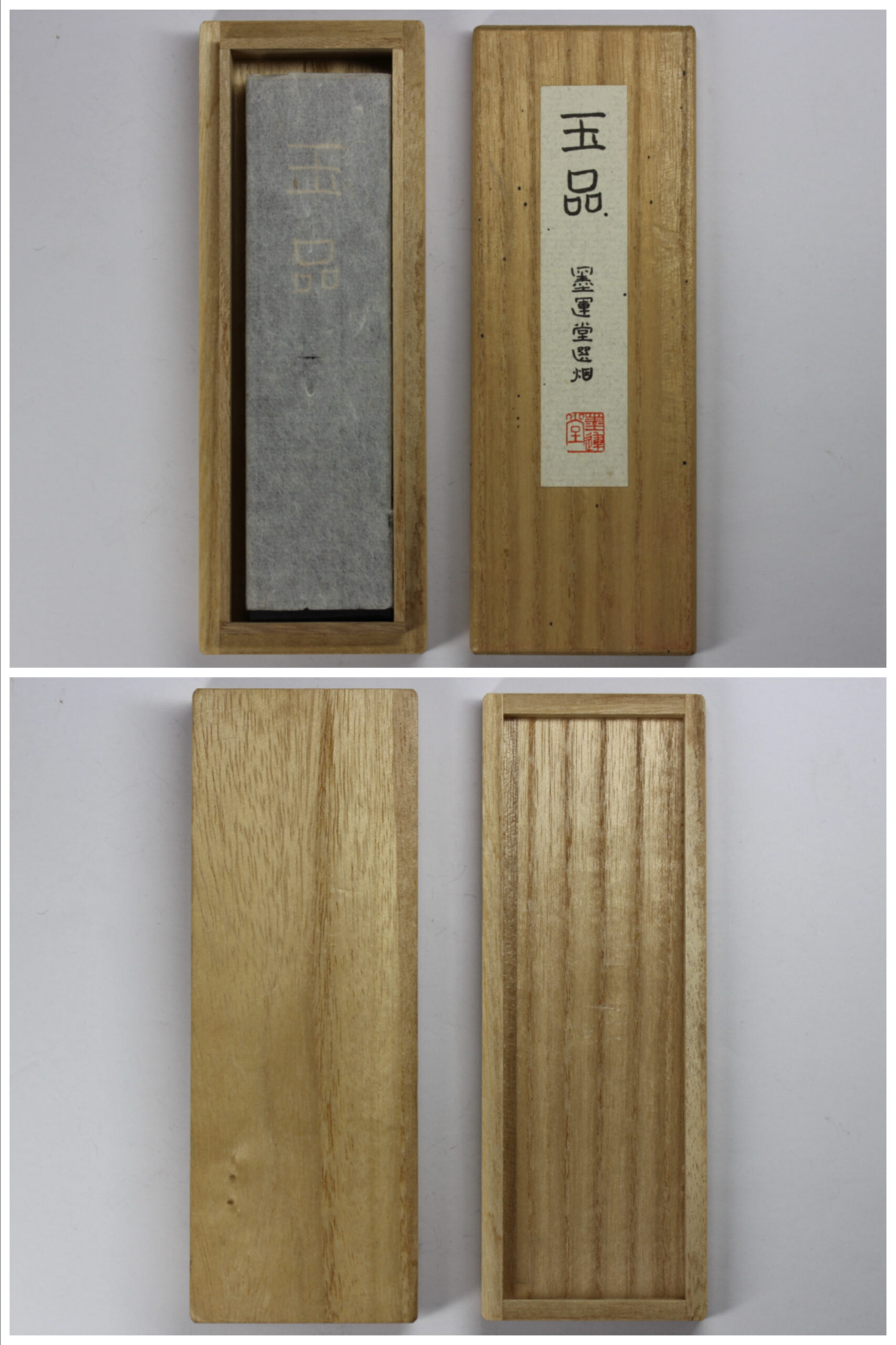 [玄清堂]和墨 墨運堂「玉品」 鉱物性直火焚煙(高級松煙) 5丁型 75g 1997年造 未使用 桐箱【文房四宝】