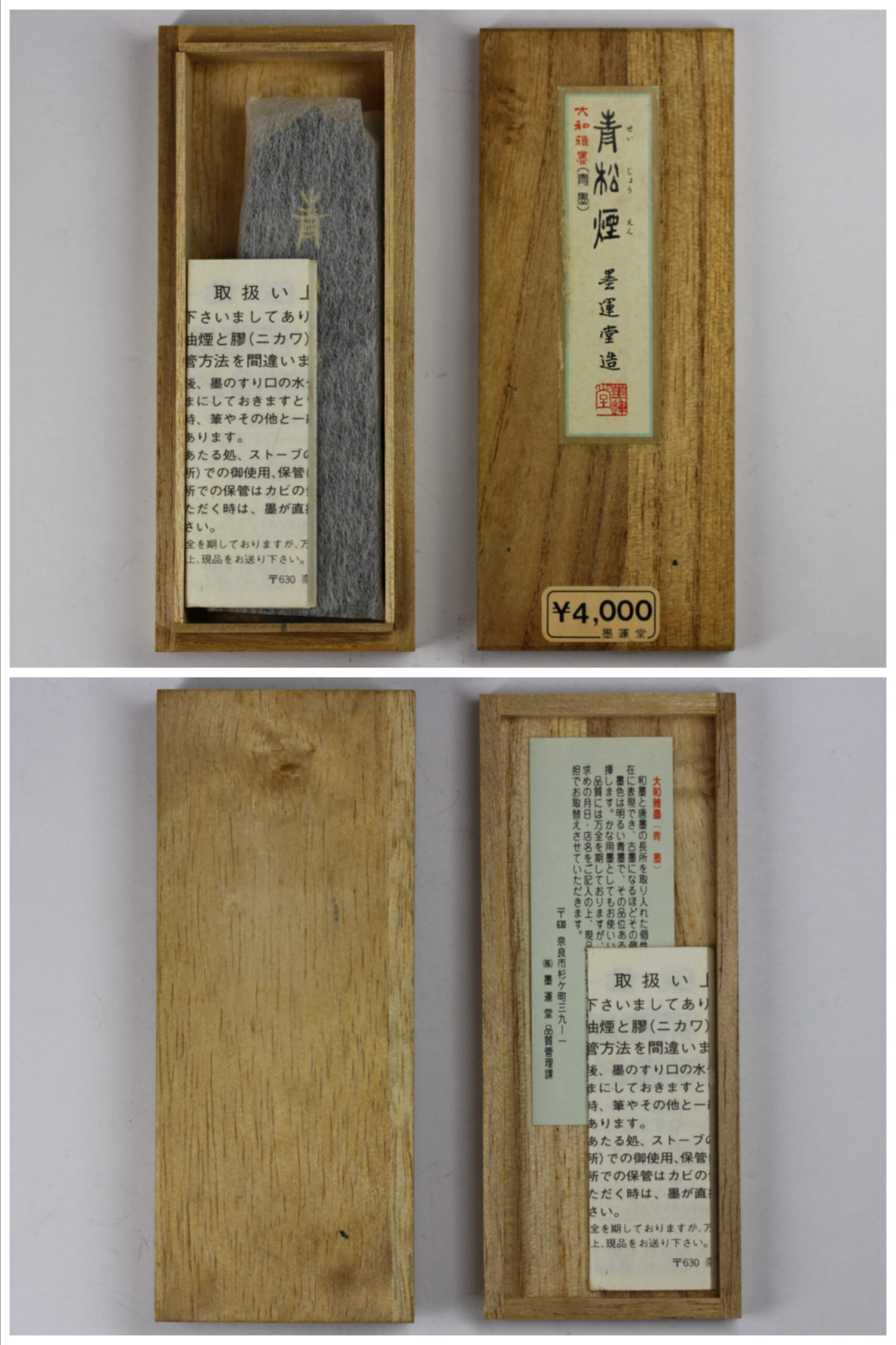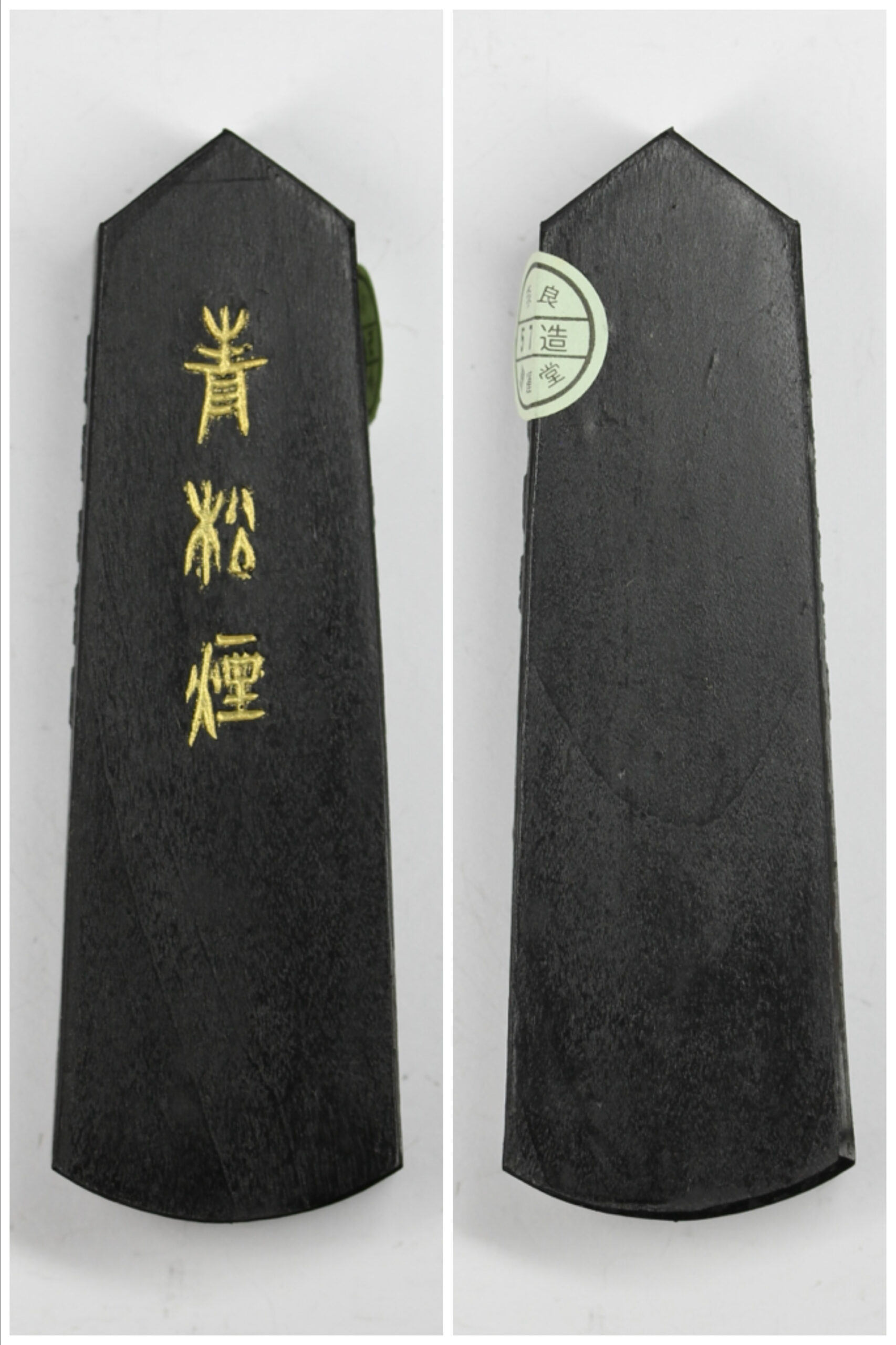 墨運堂「青松煙」、大和雅墨(青墨)、植物性直火焚煙(純松煙)墨 。