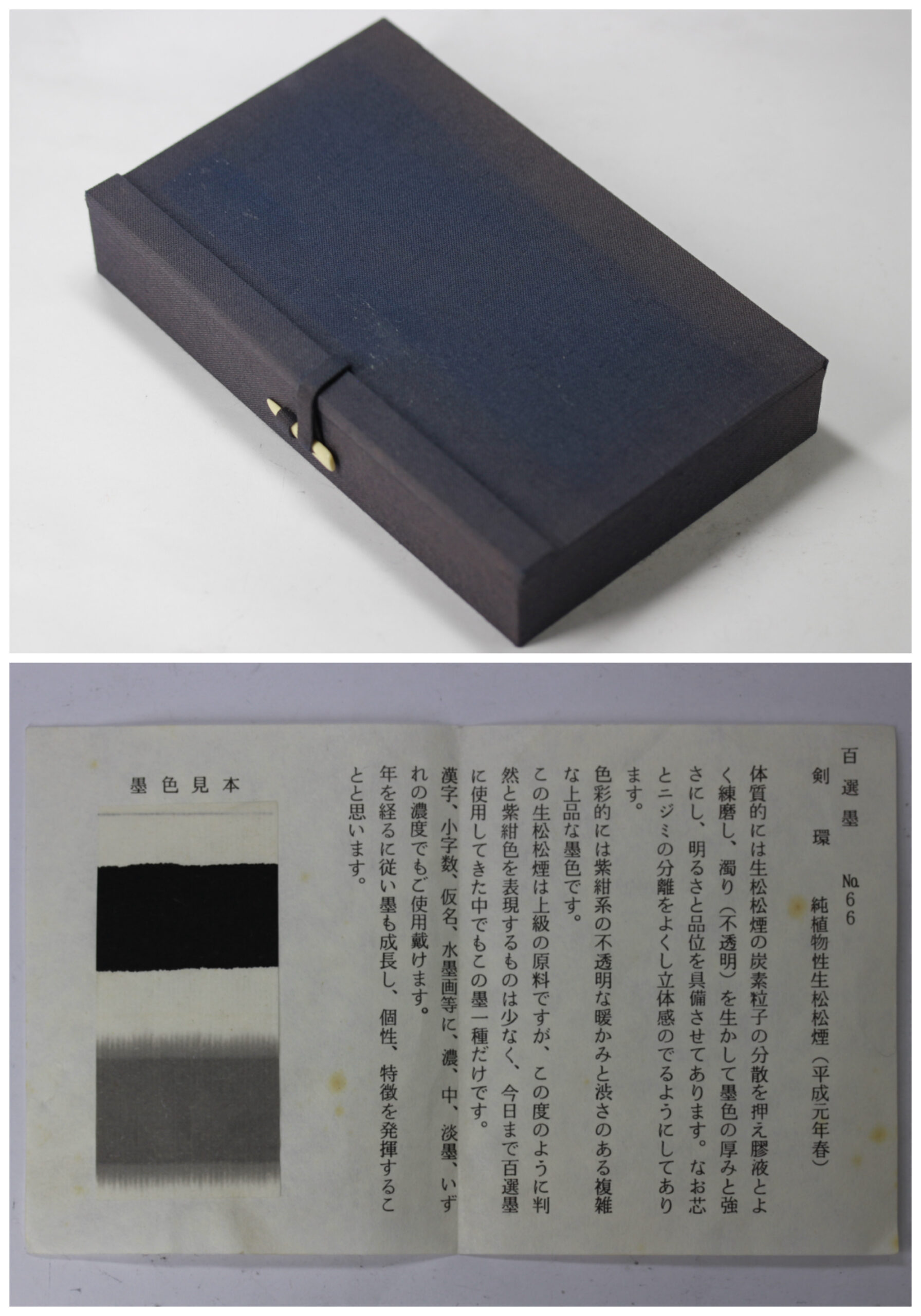 89g、平成元年春造、純植物性生松松煙墨、使用墨。