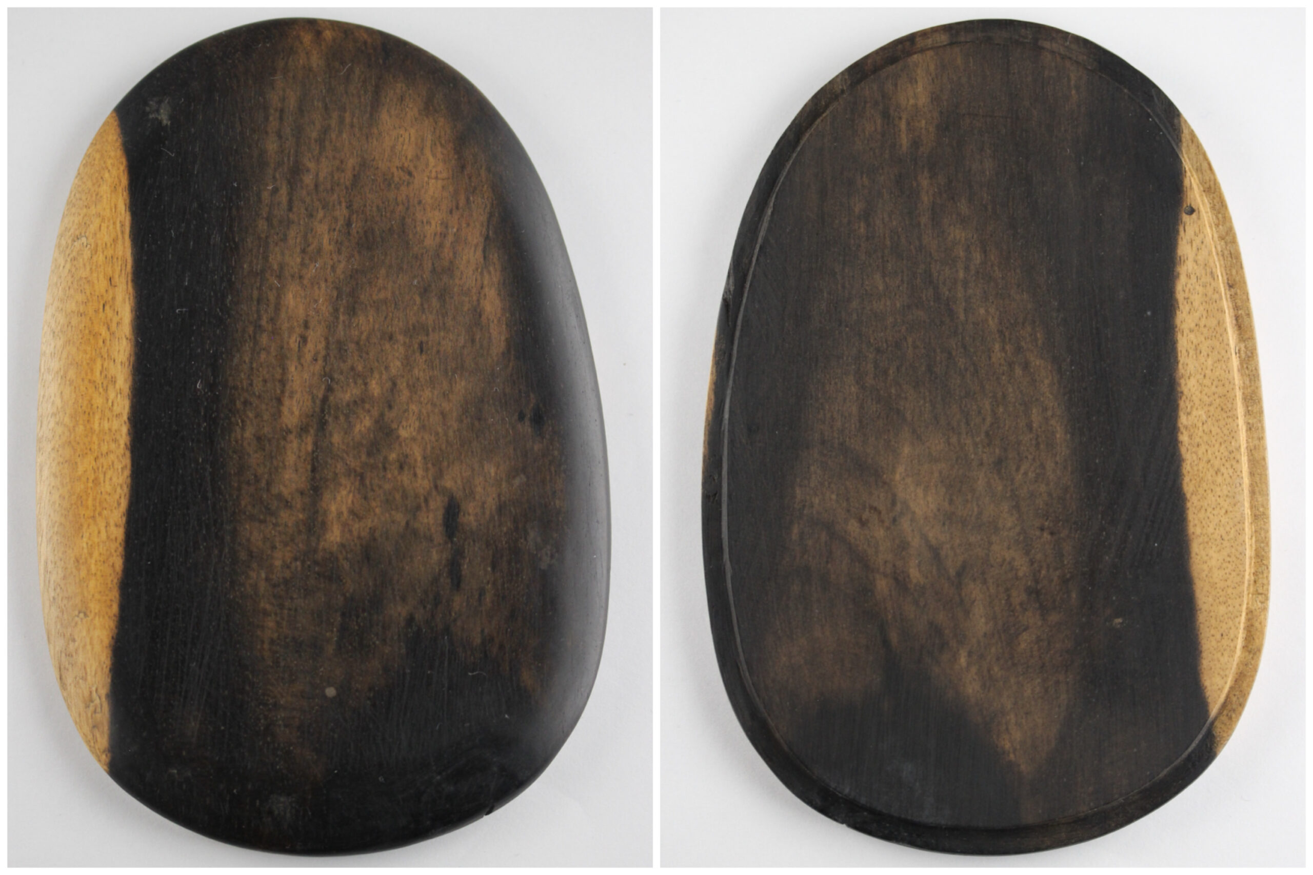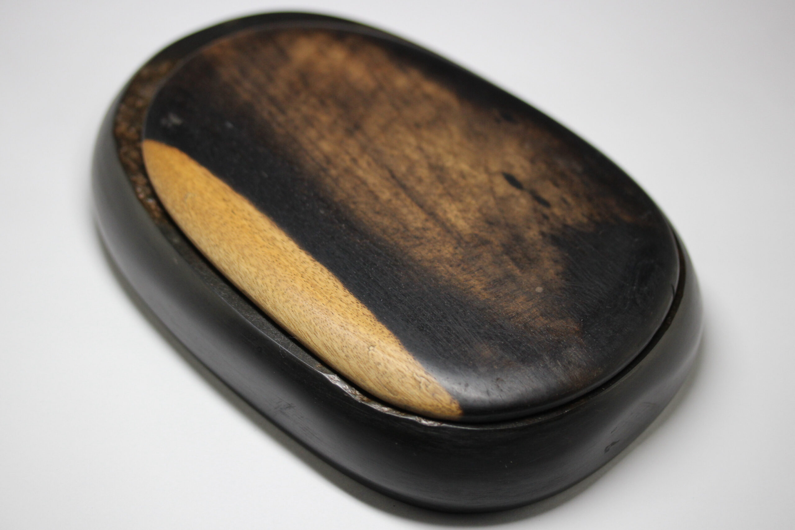 [玄清堂]書家所蔵品 和硯 土佐硯 三原石 土佐端渓・天成硯 美川作 硯18.1×12.3×3.3cm 金星有 黒柿銘木硯蓋【文房四宝】
