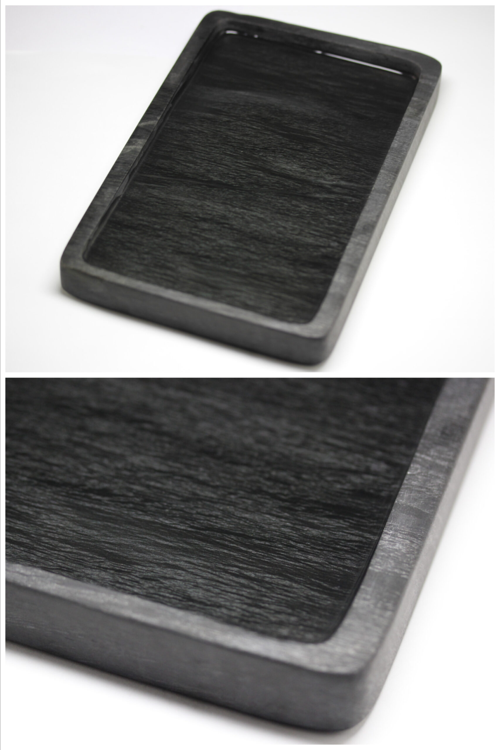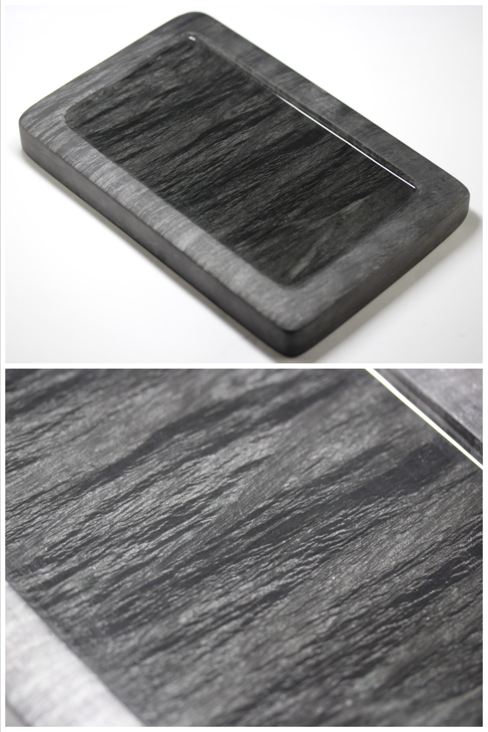 縦(cm)22.7 、横(cm)14.5 、厚さ(cm)2.6 、重量(g)1,310 硯厘 縦(cm)24.9 、横(cm)16.5 、厚さ(cm)5.1 |