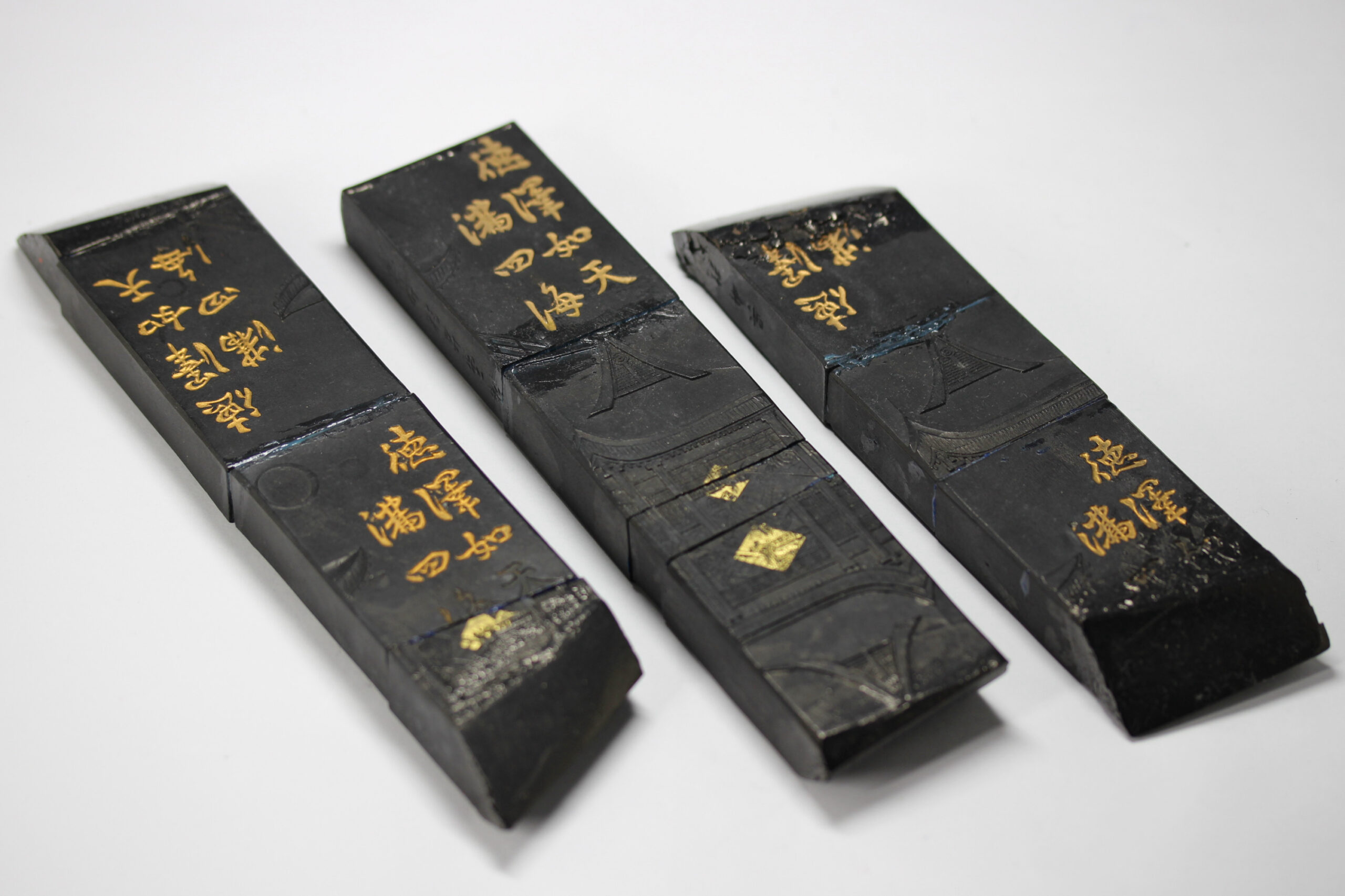 縦(cm)17.2 、横(cm)4.1 、厚さ(cm)1.6 、重量(g)129 墨(「四海」②) 縦(cm)18.8 、横(cm)4.1 、厚さ(cm)1.6 、重量(g)152 墨(「四海」③) 縦(cm)20.2 、横(cm)4.1 、厚さ(cm)1.6 、重量(g)146 |