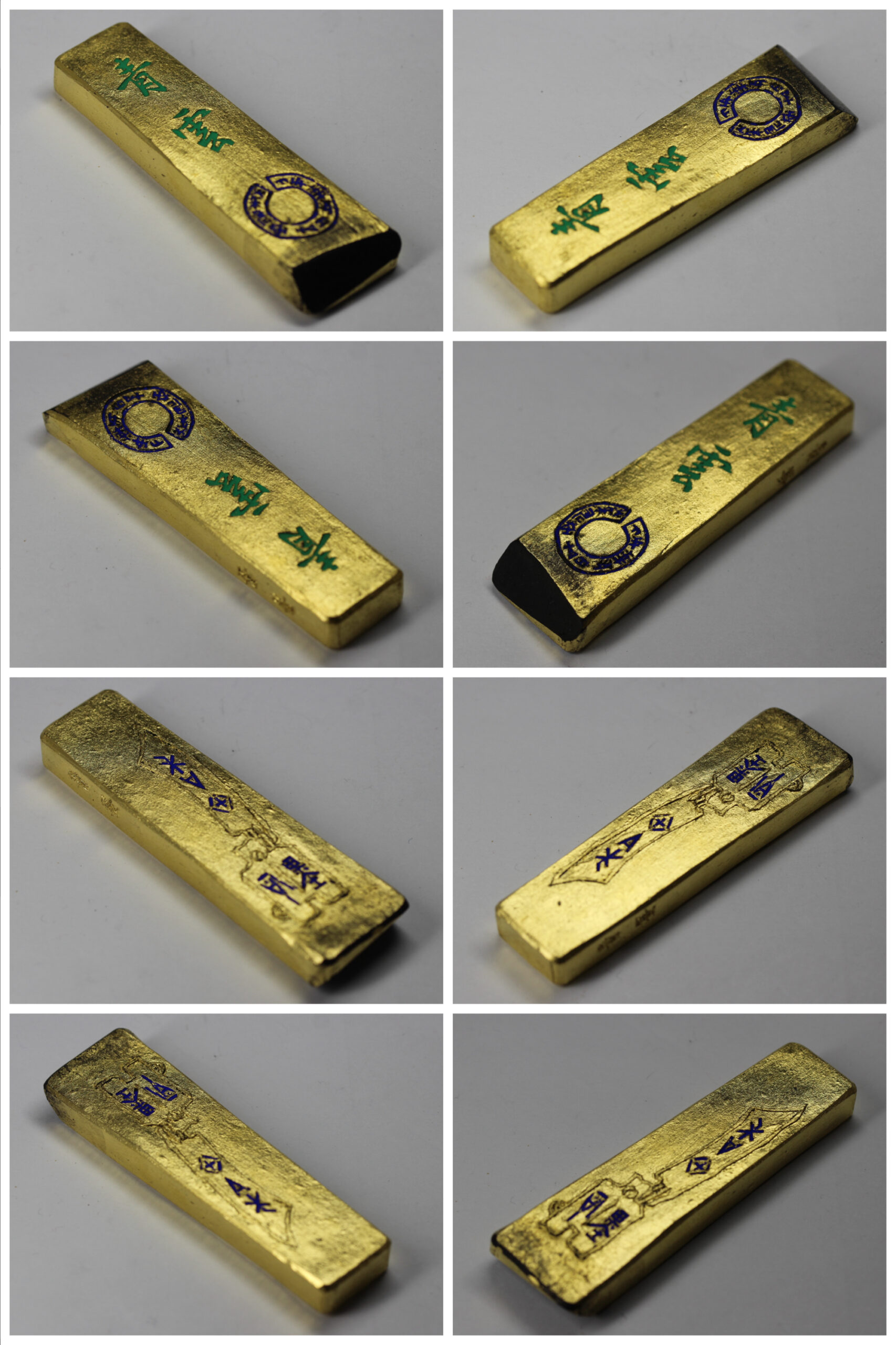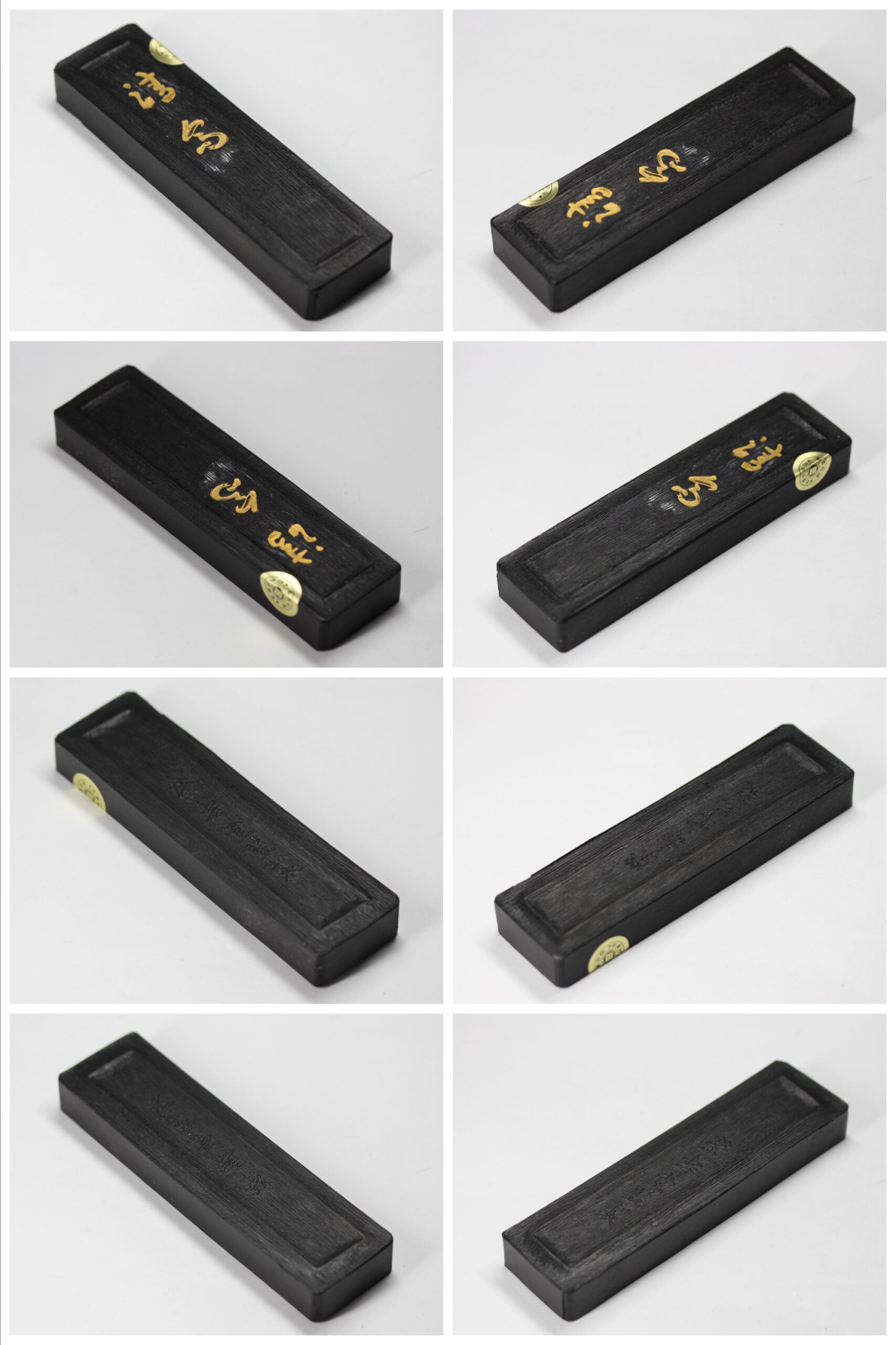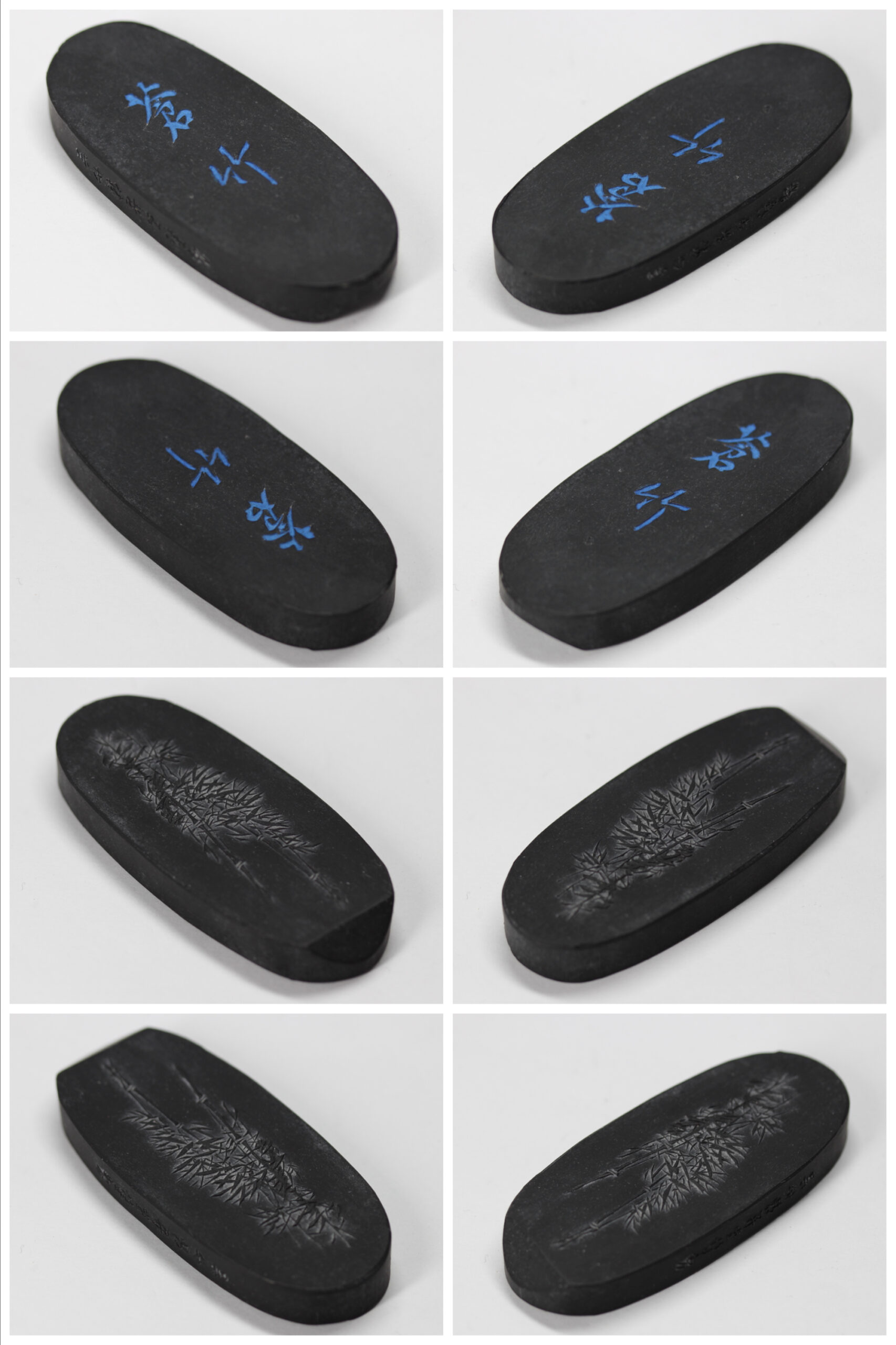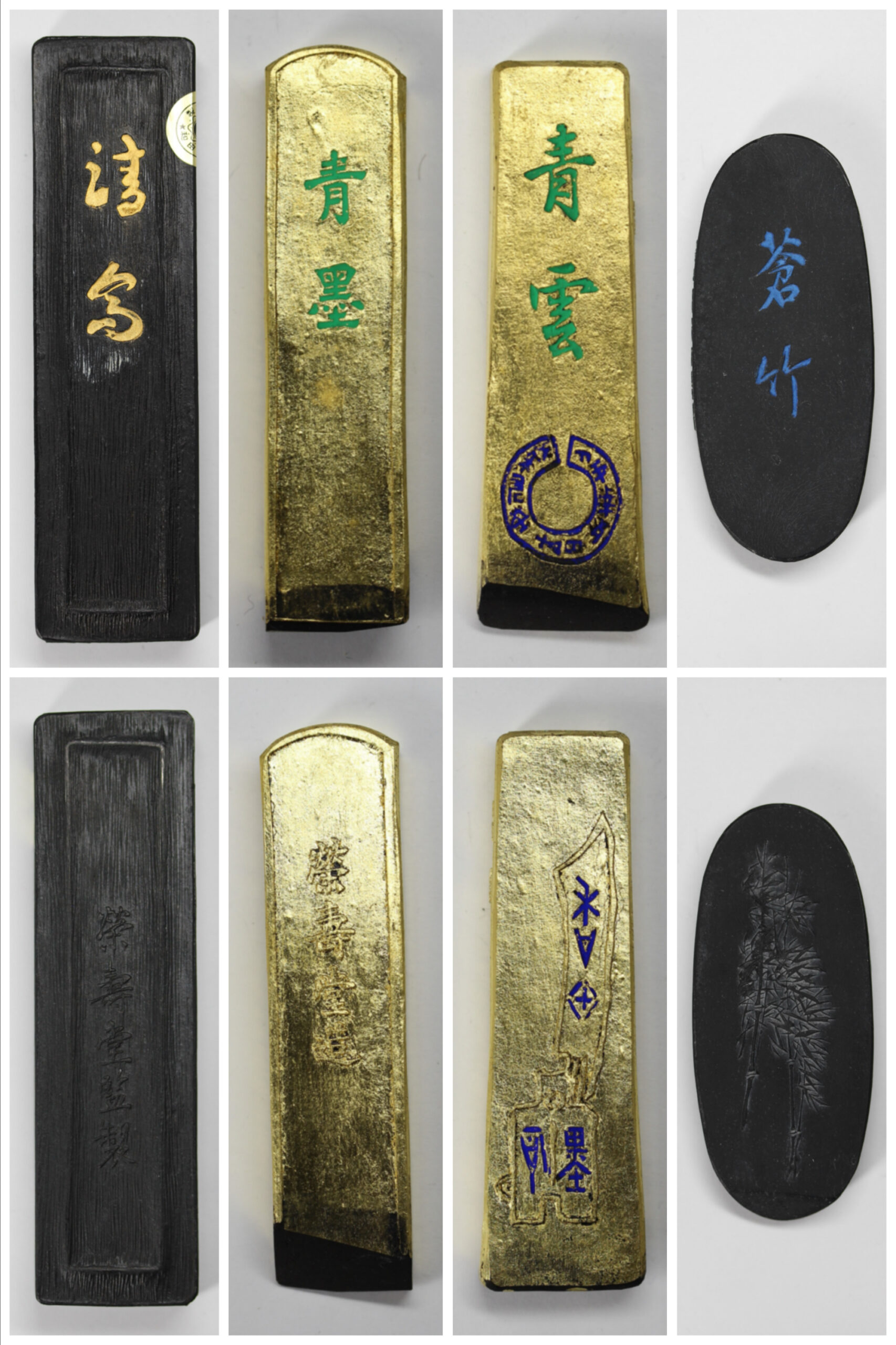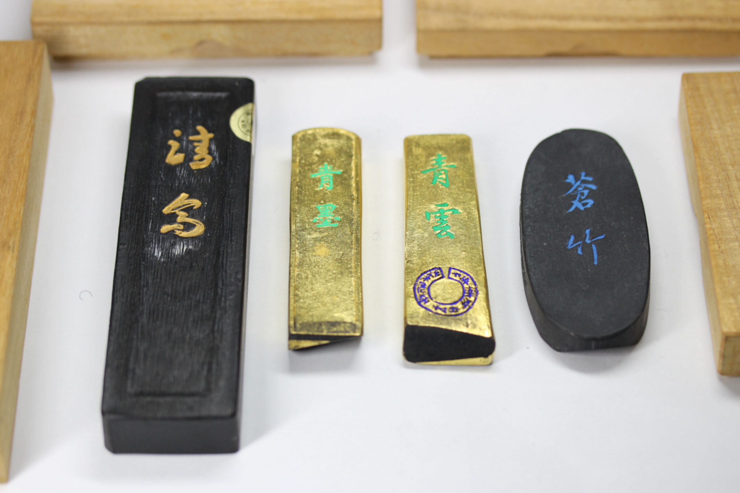 縦(cm)12.8 、横(cm)3.5 、厚さ(cm)1.4 、重量(g)79 墨(栄寿堂 青墨「青雲」) 縦(cm)8.2 、横(cm)2.5 、厚さ(cm)0.9 、重量(g)21 墨(栄寿堂 特選「青墨」) 縦(cm)8.1 、横(cm)2.1 、厚さ(cm)1.0 、重量(g)18 墨(呉竹精昇堂 青墨「蒼竹」) 縦(cm)8.0 、横(cm)3.4 、厚さ(cm)0.9 、重量(g)32 |