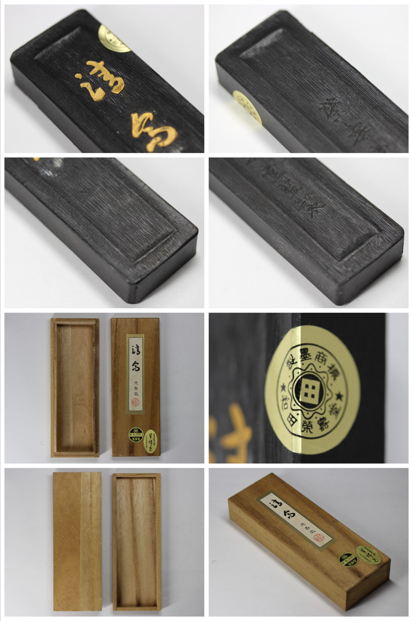 [玄清堂]書家旧蔵MY 和墨 栄寿堂、呉竹精昇堂 墨4丁 (未使用1丁・使用墨3丁) 150g 桐箱【文房四宝】