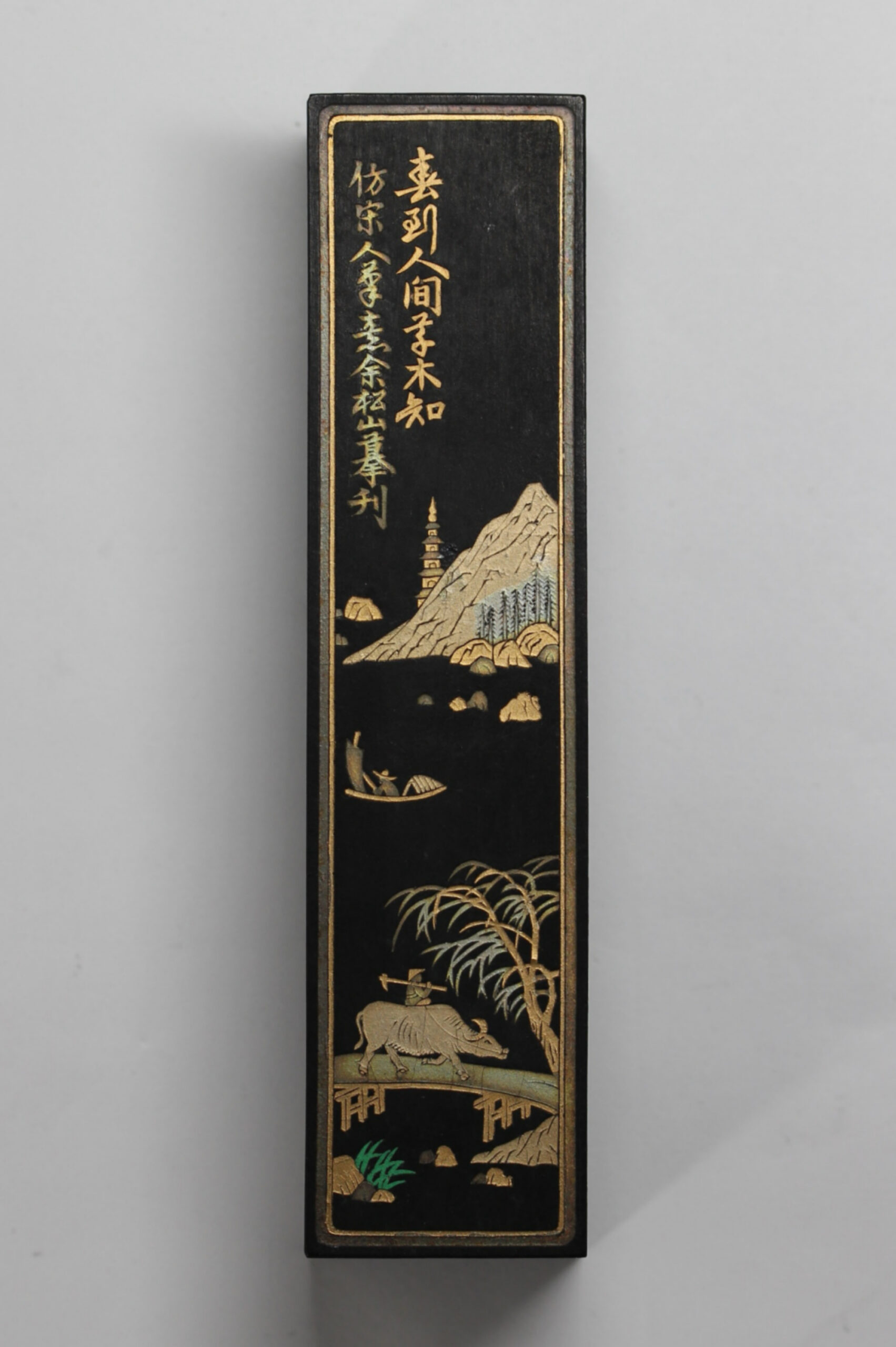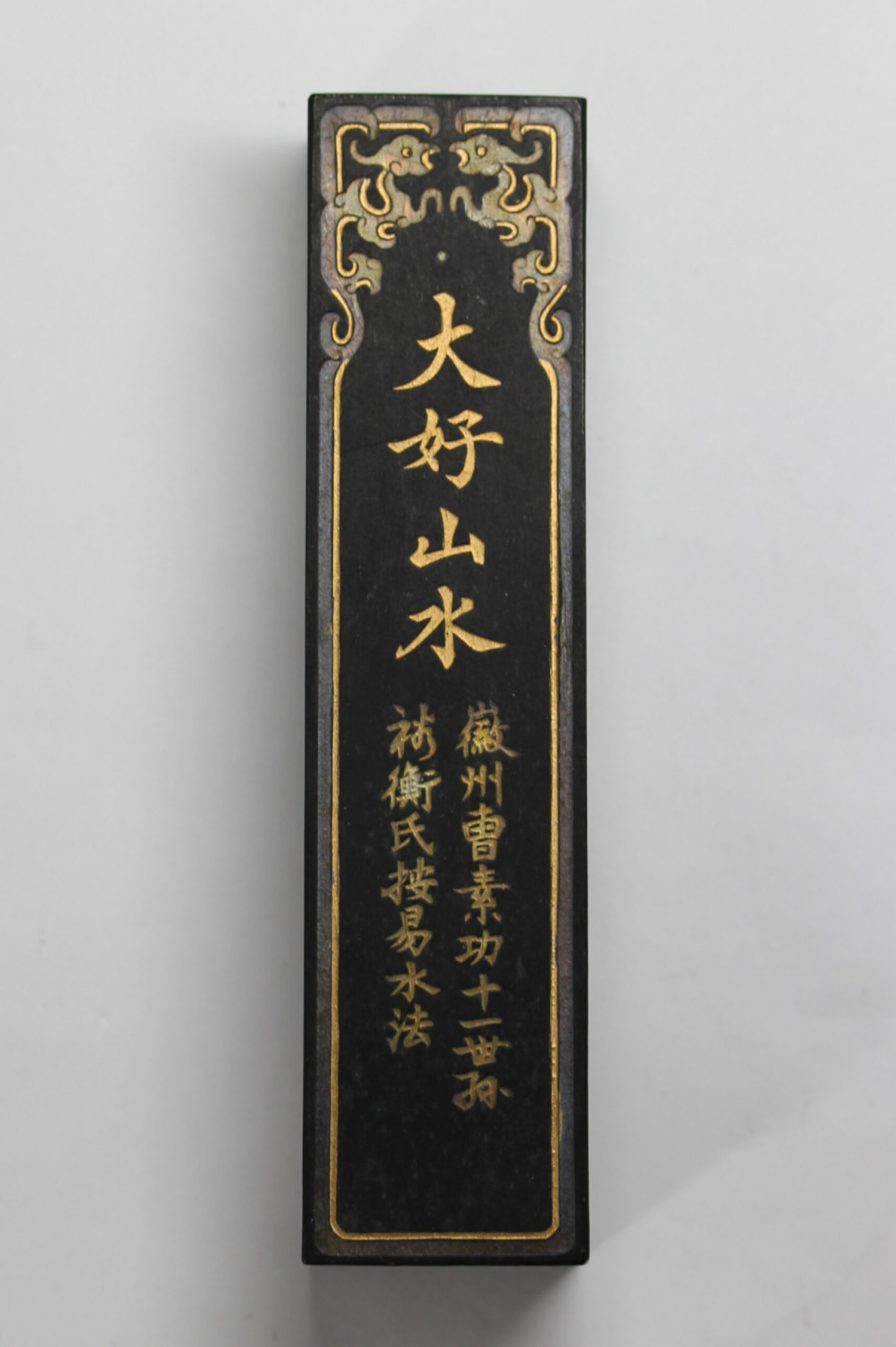 [玄清堂]書家旧蔵MY 唐墨 徽州曹素功十一世孫 裕衡氏按易水法 「大好山水」 油煙101 2両(1/8型) 134g 未使用【中国文房四宝】