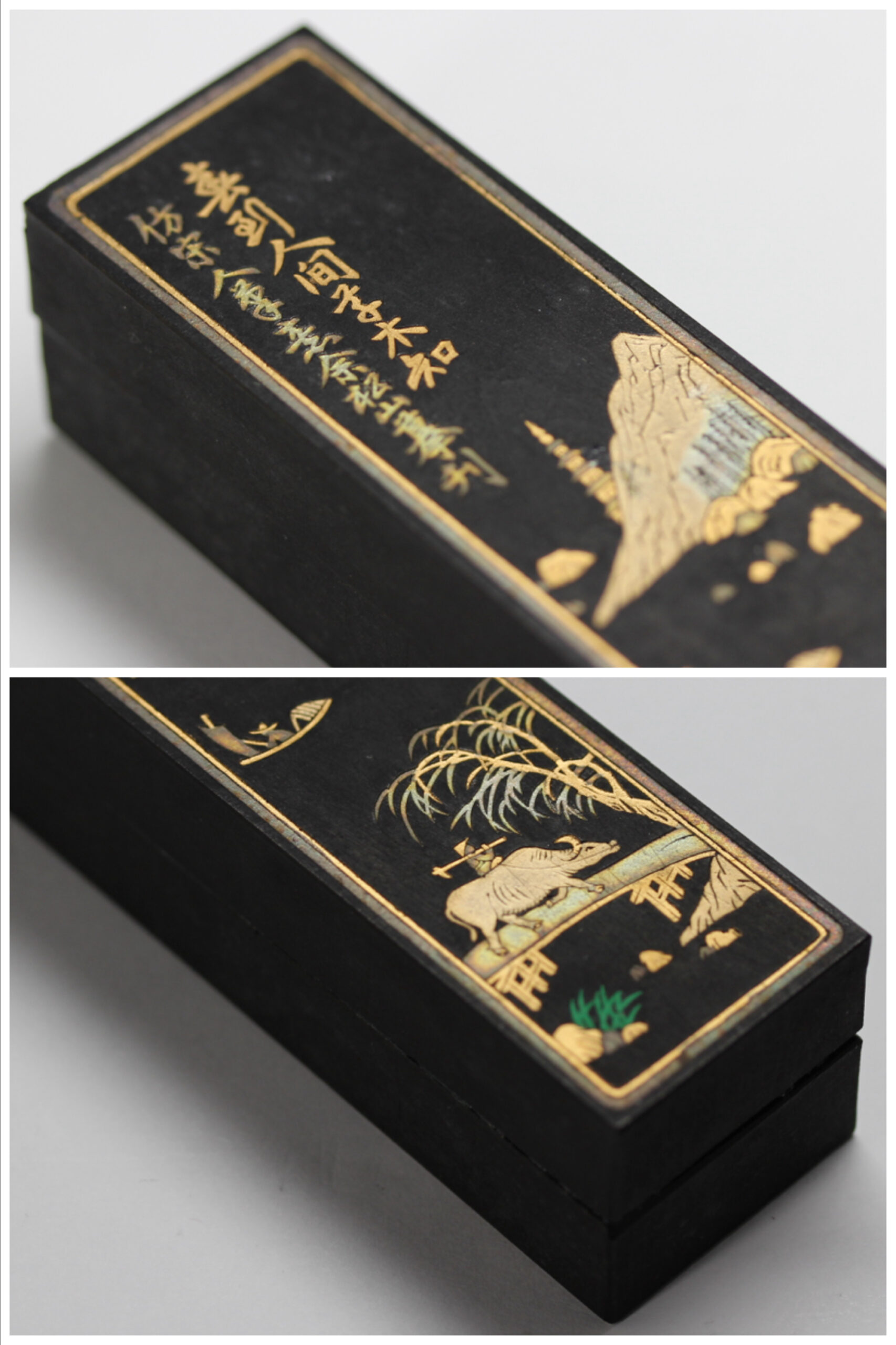 2両(1/8型)、134g、未使用。徽州曹素功十一世孫 裕衡氏按易水法「大好山水」、油煙101。