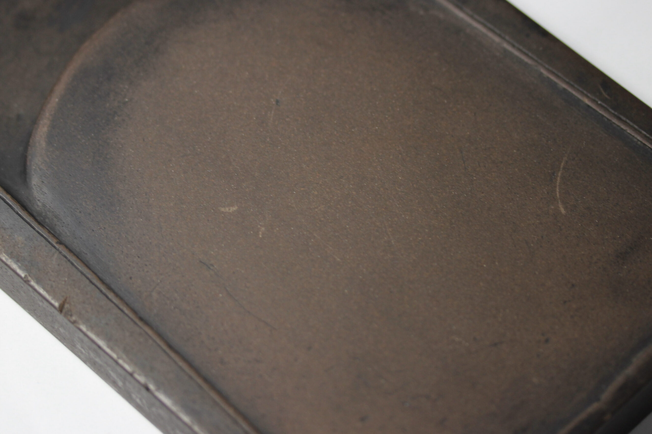 [玄清堂]和硯 新澄泥聖洞硯 珍品 川口丁郷作 長方硯 蓋付三能硯 硯21.2×14.1×4.0cm【文房四宝】