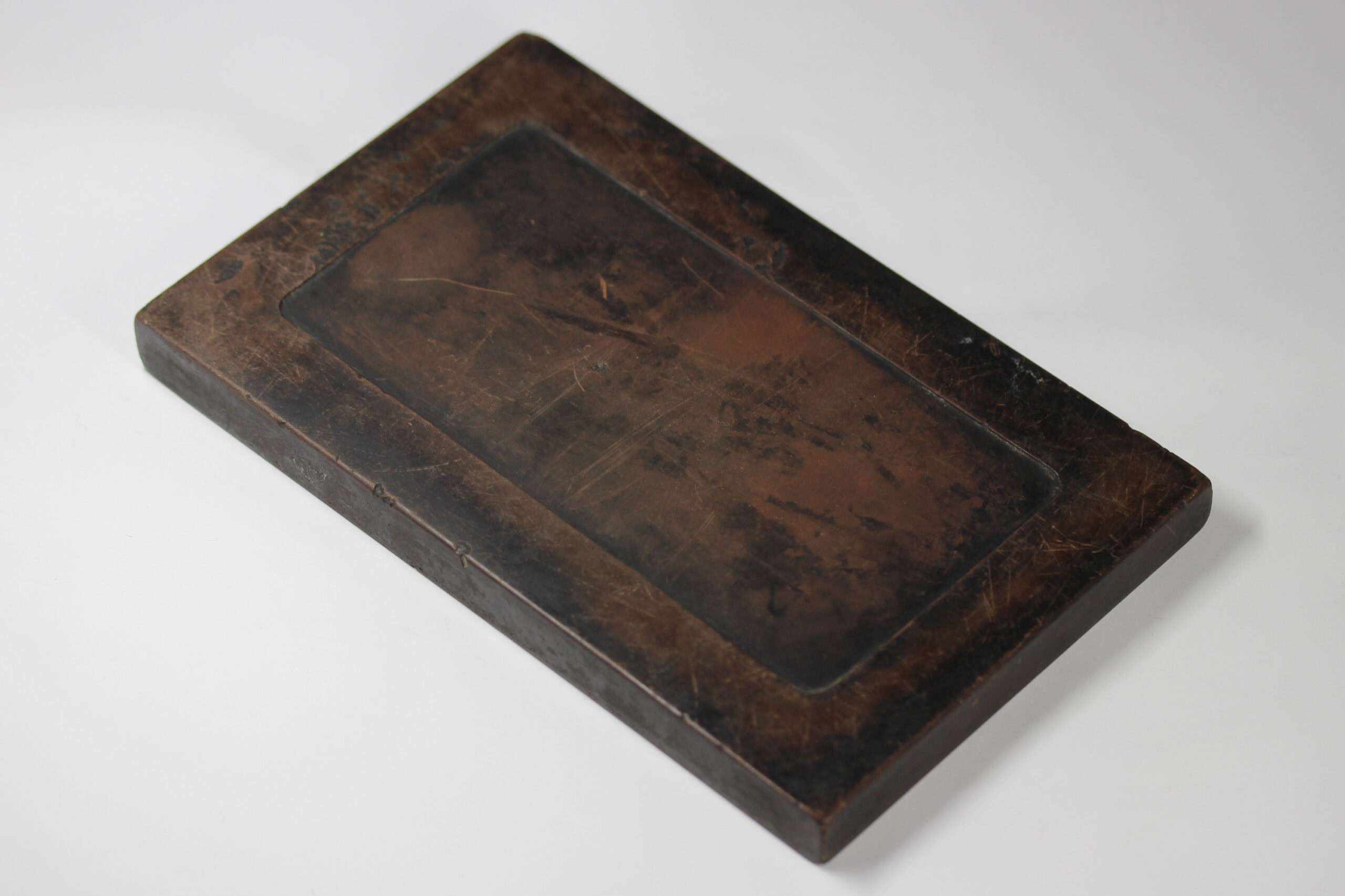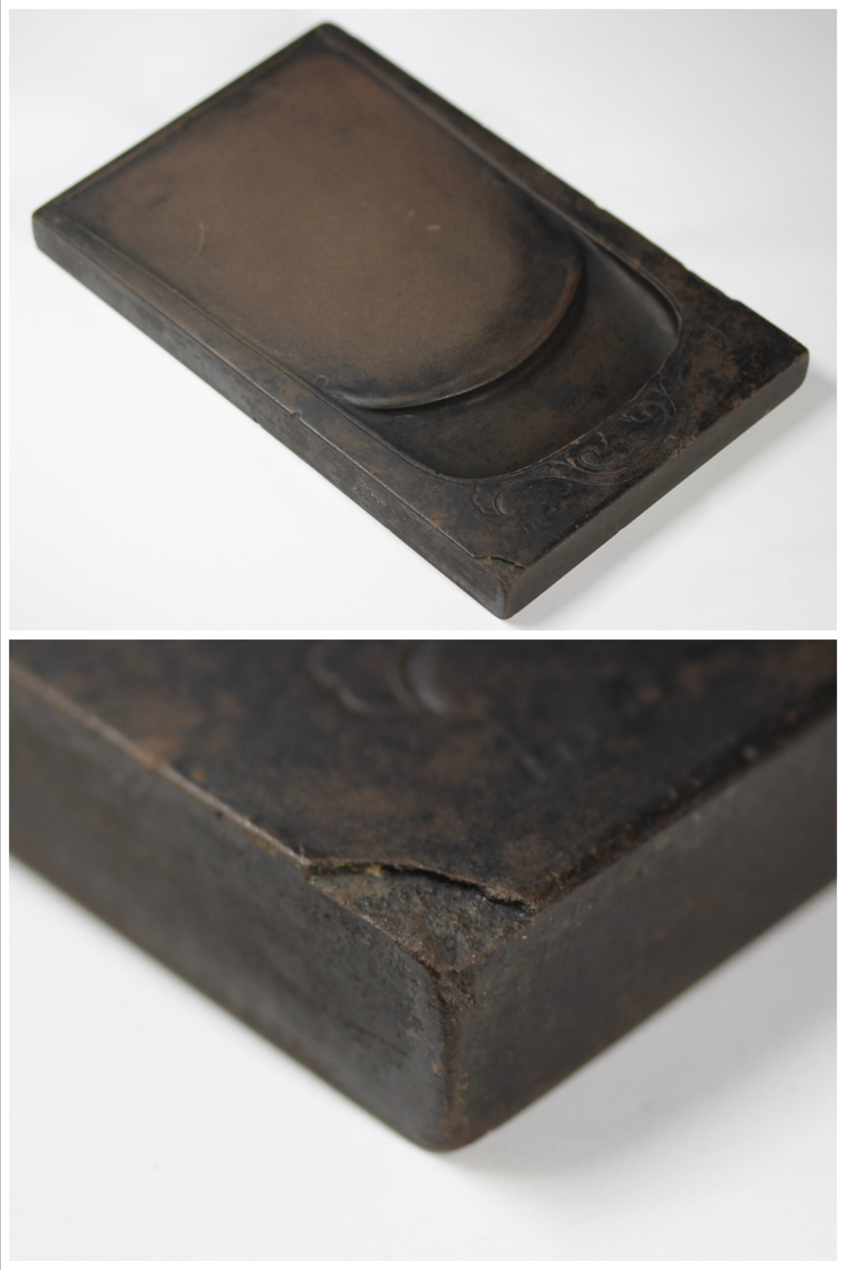 [玄清堂]端硯 大珍品 端渓水巌大西洞・紫色氷裂紋板硯 硯12.7×7.9×1.6cm 唐木箱【中国文房四宝】