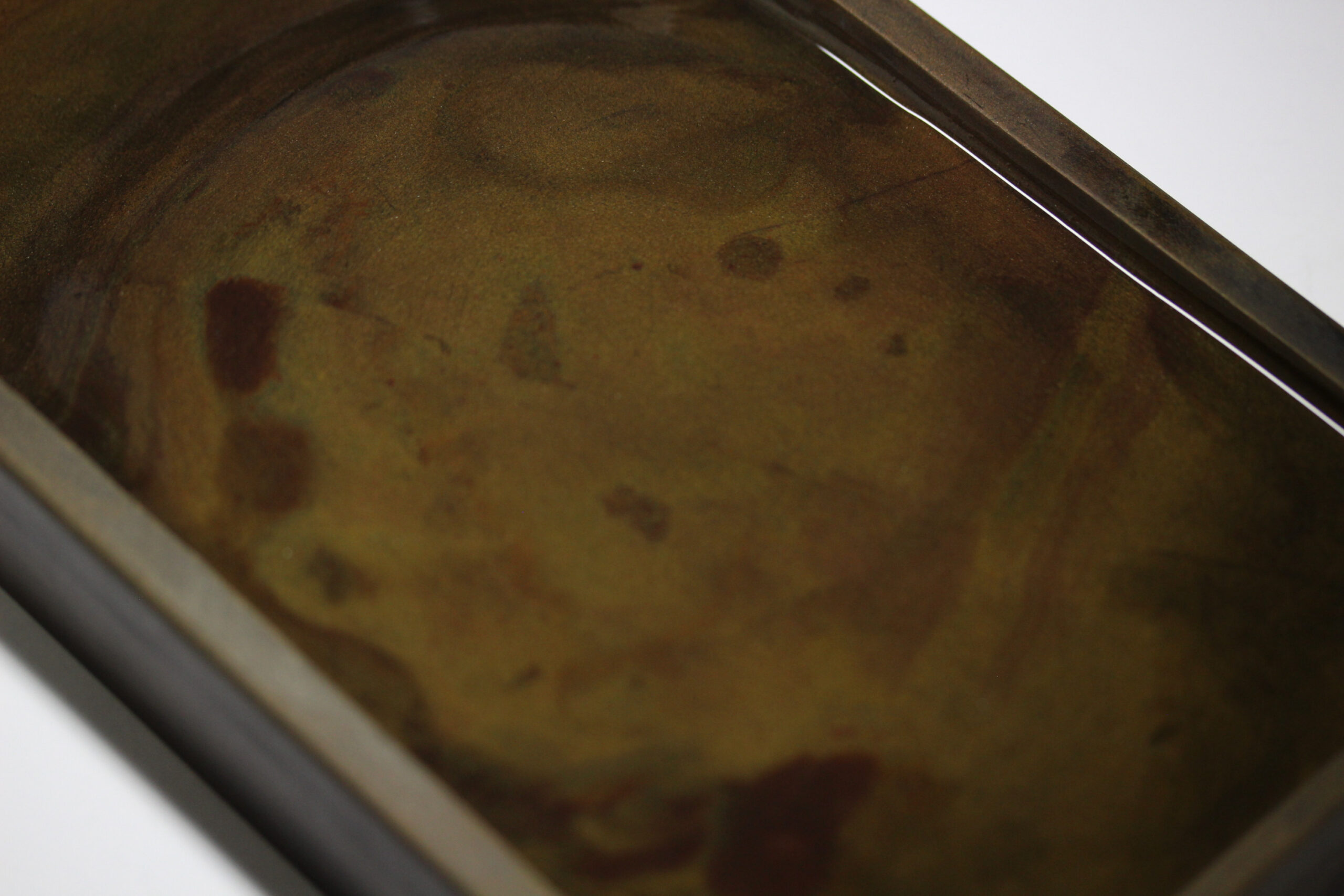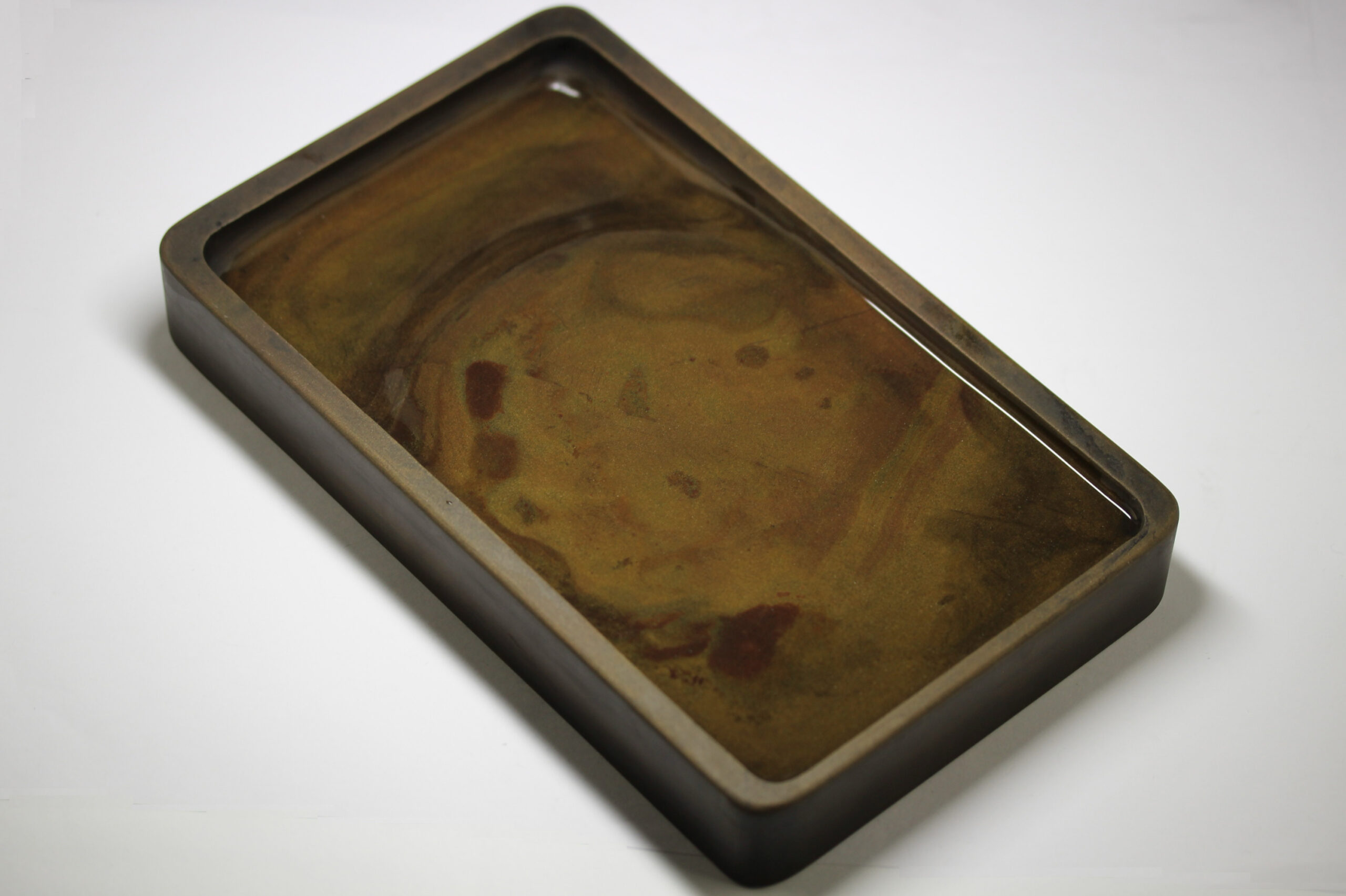 [玄清堂]澄泥硯 古硯 大珍品 鱔魚黄澄泥・黄泥七彩硯 硯26.5×16.1×3.8 唐木硯匣【中国文房四宝】