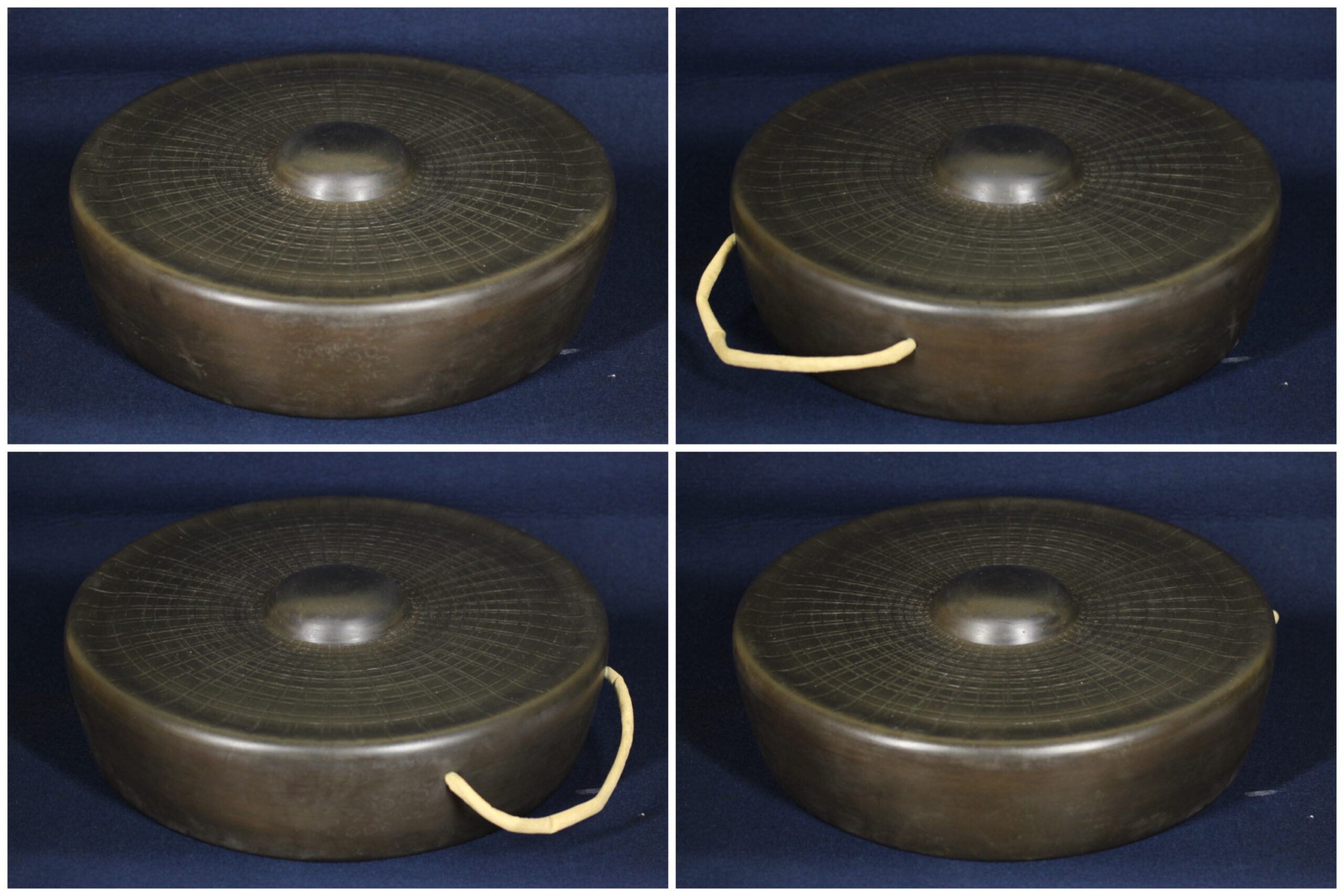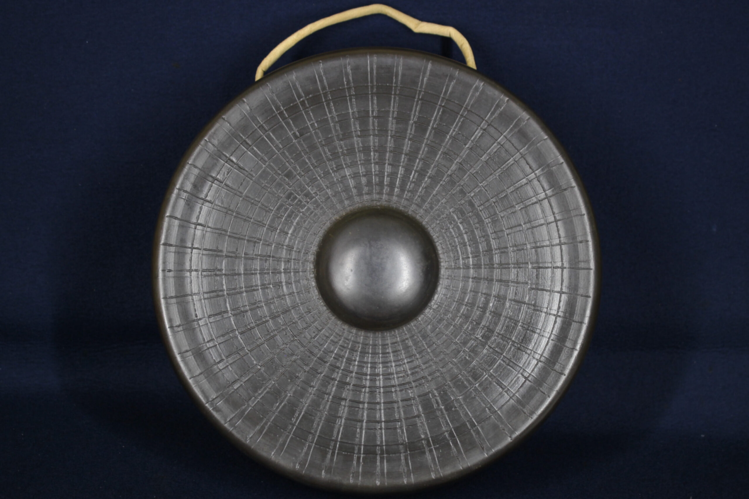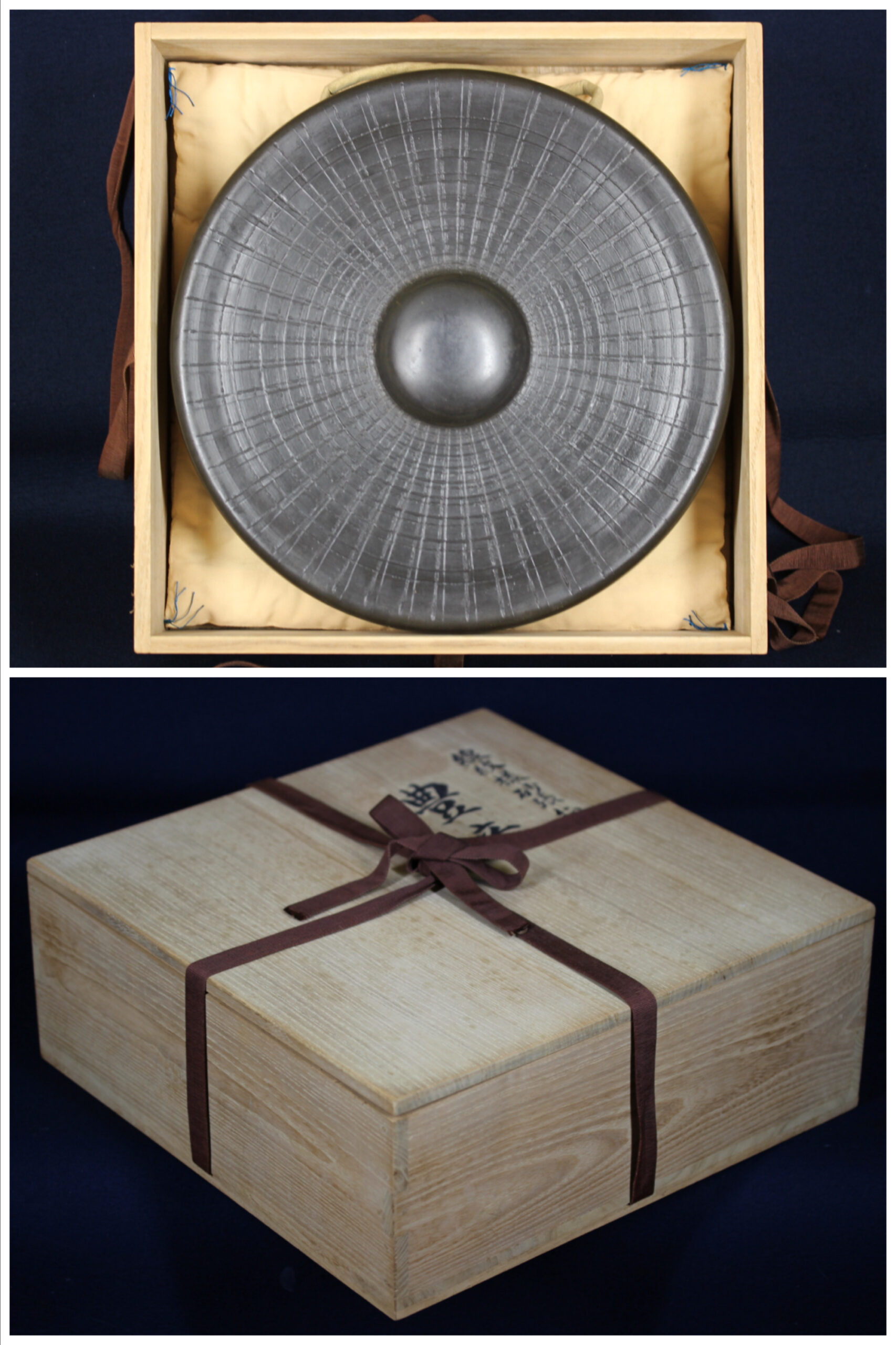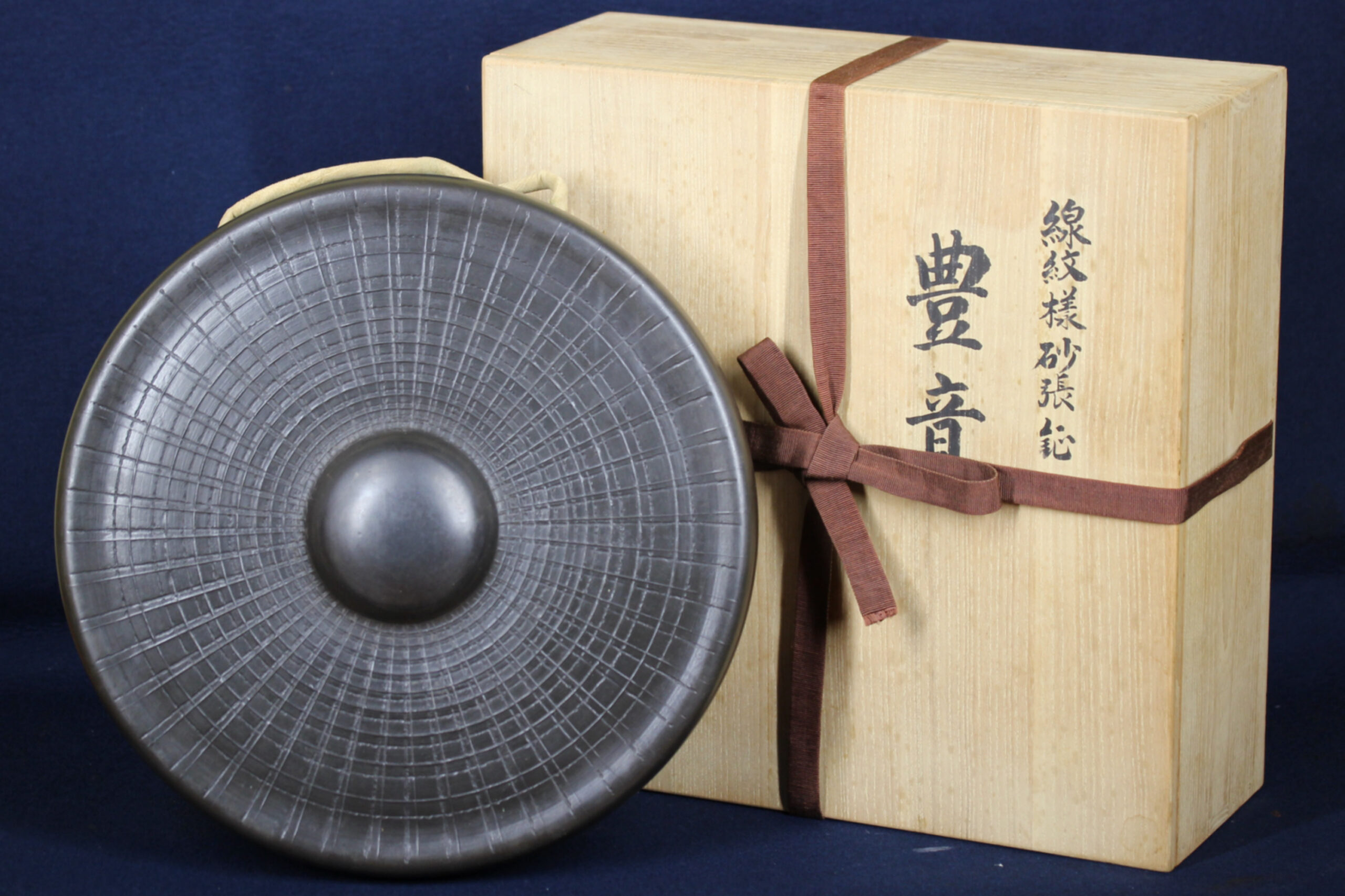 [玄清堂]蒐集家旧蔵 銅鑼 線模様砂張鉦 「豊音」 直径約36.5cm 昭和50年1月 一隅造 美品 共箱