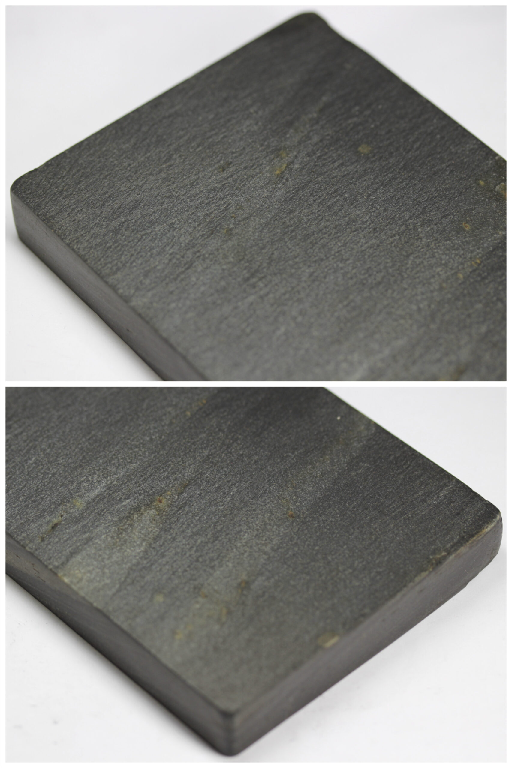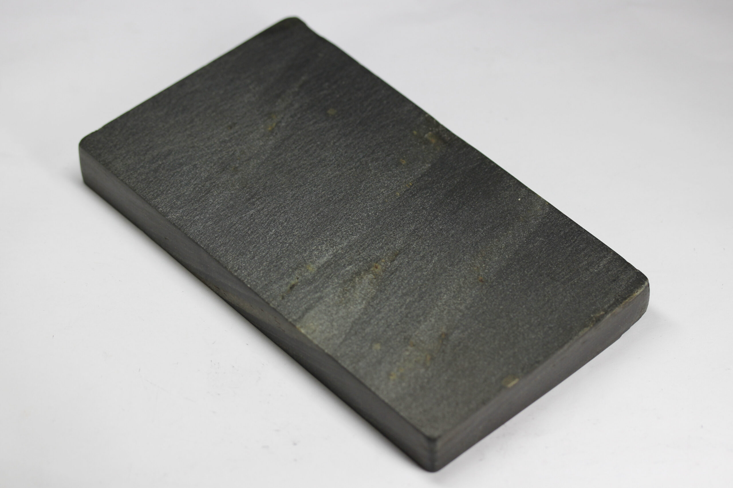 山東省渤海の孤島、駝基島(だきとう)の硯。ダイヤモンドの粉を敷き詰めたかの如く、まばゆく輝いています。比重の高さも特徴で最上の実用硯です。大変おおらかな作硯。硯背は硯板として使用出来ます。紅糸石と並ぶ魯硯の名石。歙州石に酷似。
